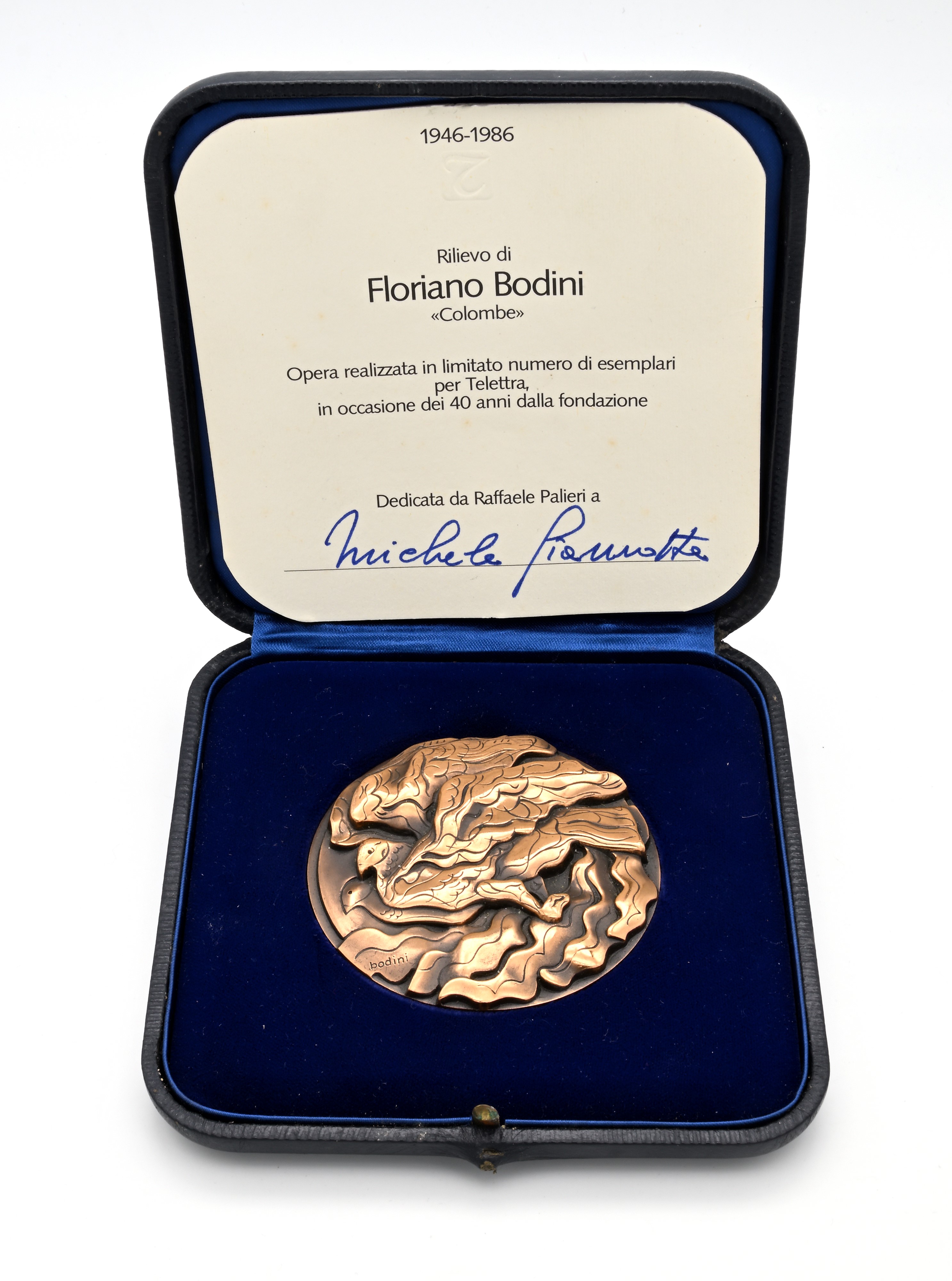 Floriano Bodini - Medaglia in bronzo raffigurante "Colombe" per il 40° anniversario di Telettra , 1986