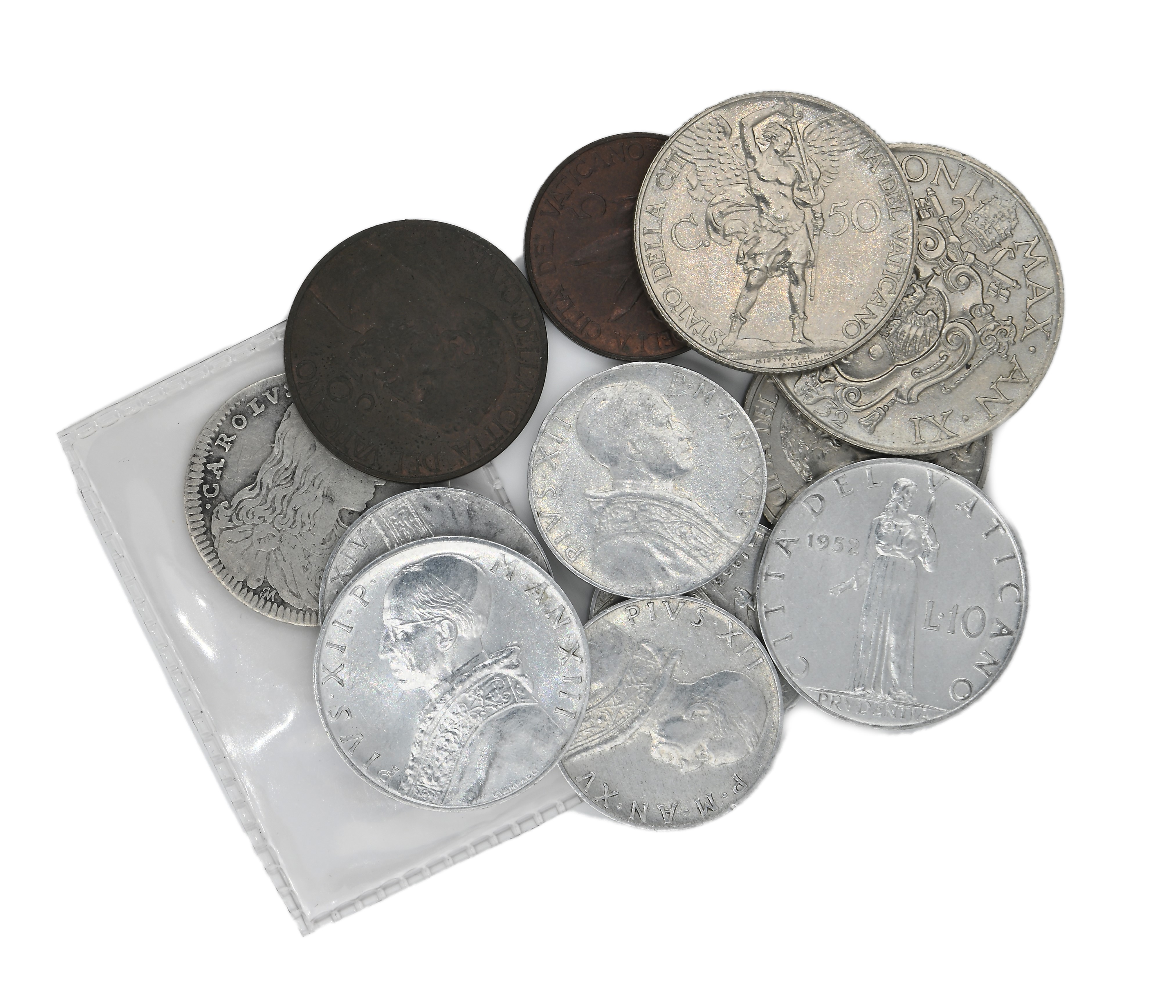 Carlino da 10 Grana 1685 in argento Carlo II Regno di Napoli e Lotto monete di metallo vile Pio XI-Pio XIII Città del Vaticano