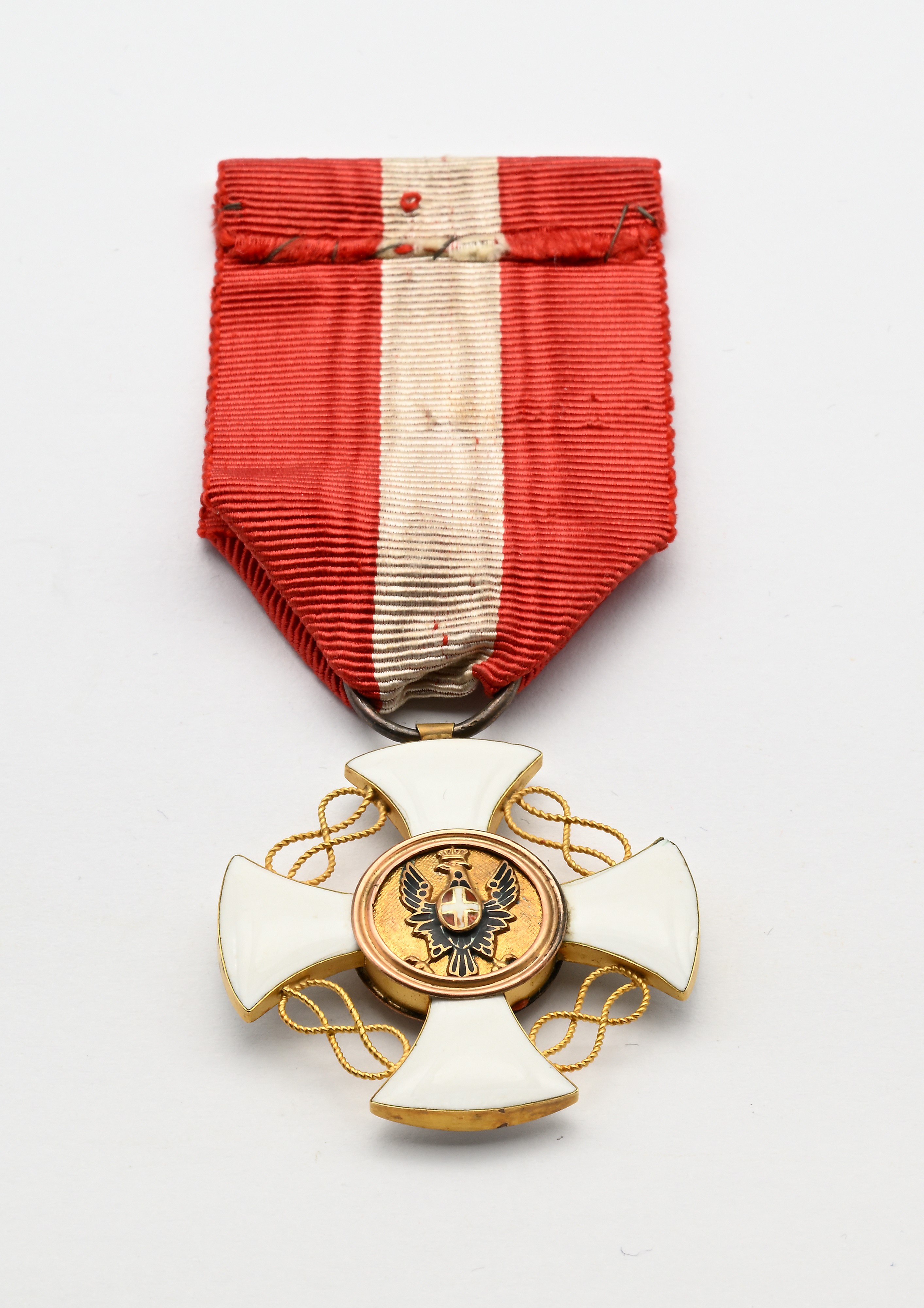 Croce da Ufficiale della Corona d'Italia in metallo dorato e smaltato Vittorio Emanuele III Regno d'Italia