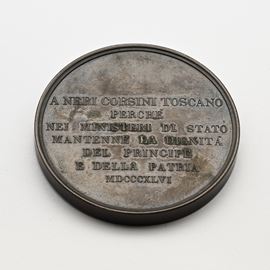 Medaglia in bronzo 1846 in ricordo di Neri Corsini, Primo Ministro del Granducato di Toscana