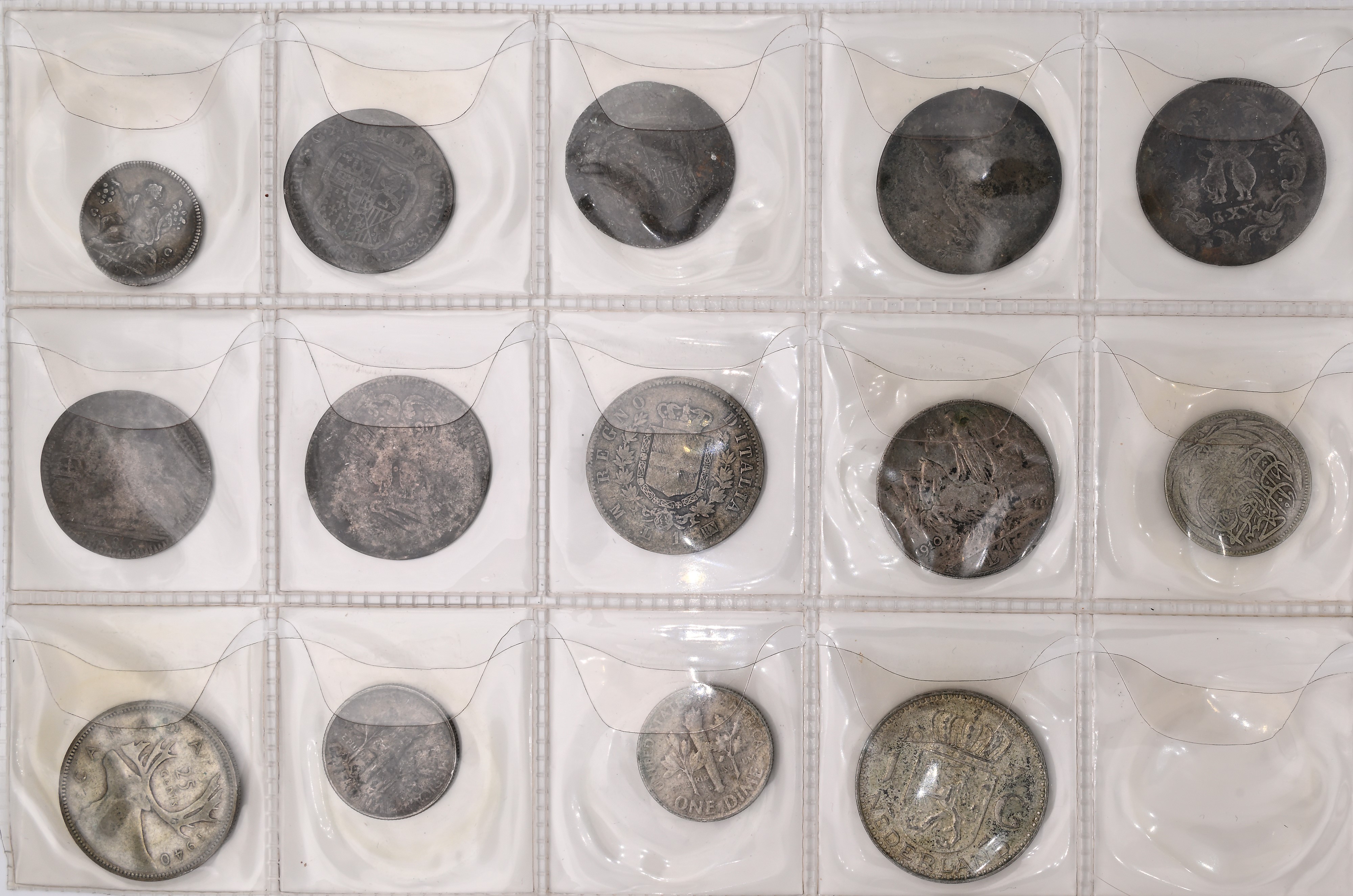 Lotto di 14 piccole monete italiane ed estere in argento (Tarì da XX Grana e Carlini Carlo I-II, Mezzo Carlino Carlo III Regno di Napoli)