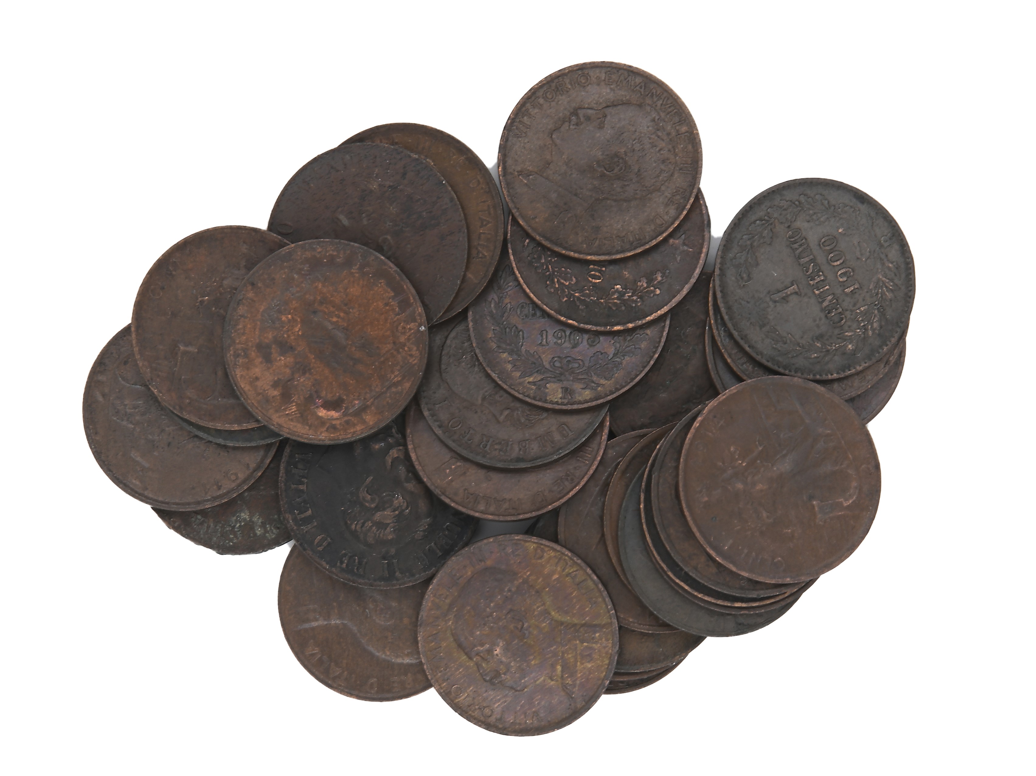 Lotto di 30 monete da 1 centesimo Vittorio Emanuele II, Umberto I e Vittorio Emanuele III Regno d'Italia