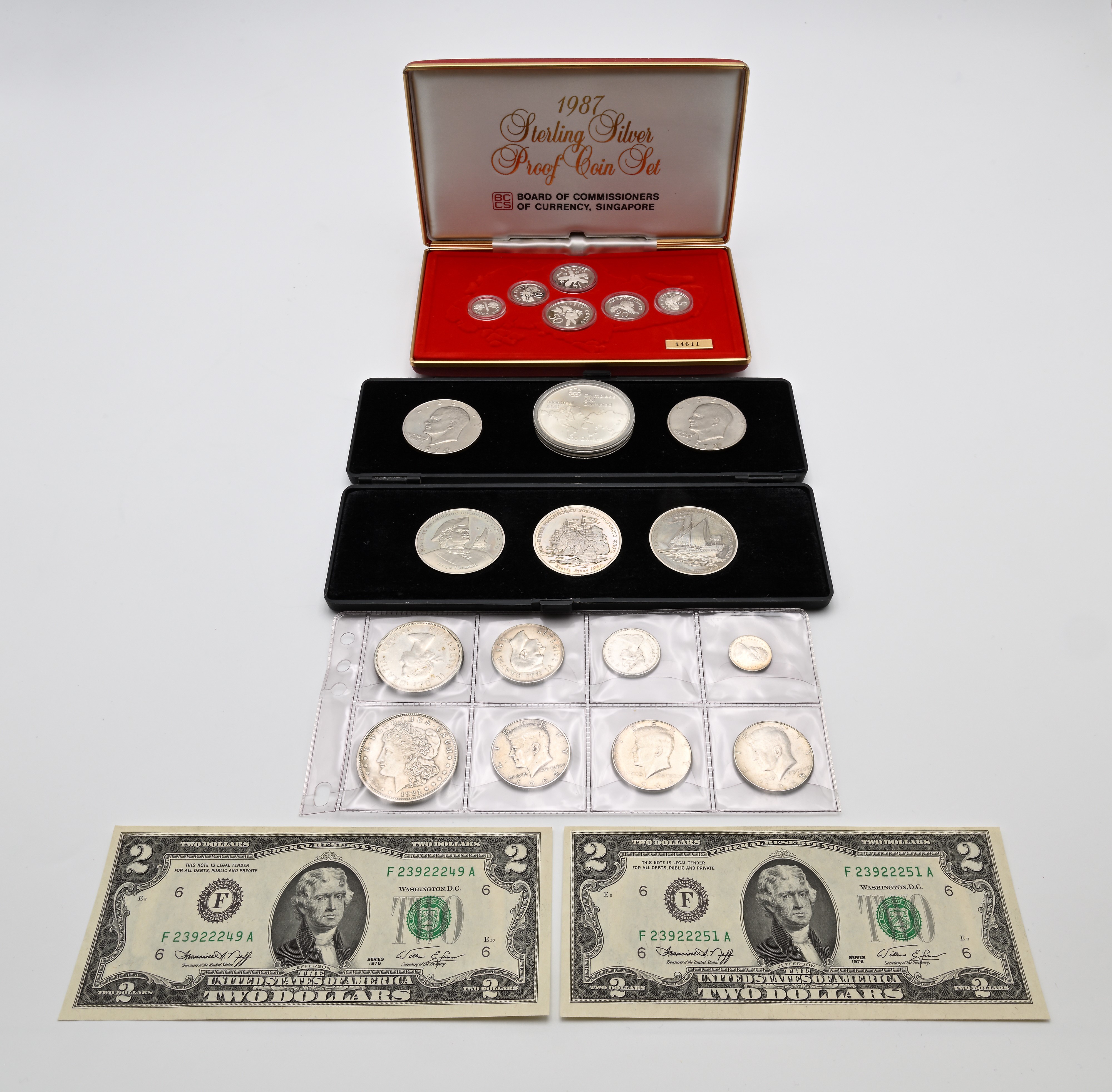 Lotto di monete, banconote e medaglie estere: U.S.A., Canada, Russia, Singapore