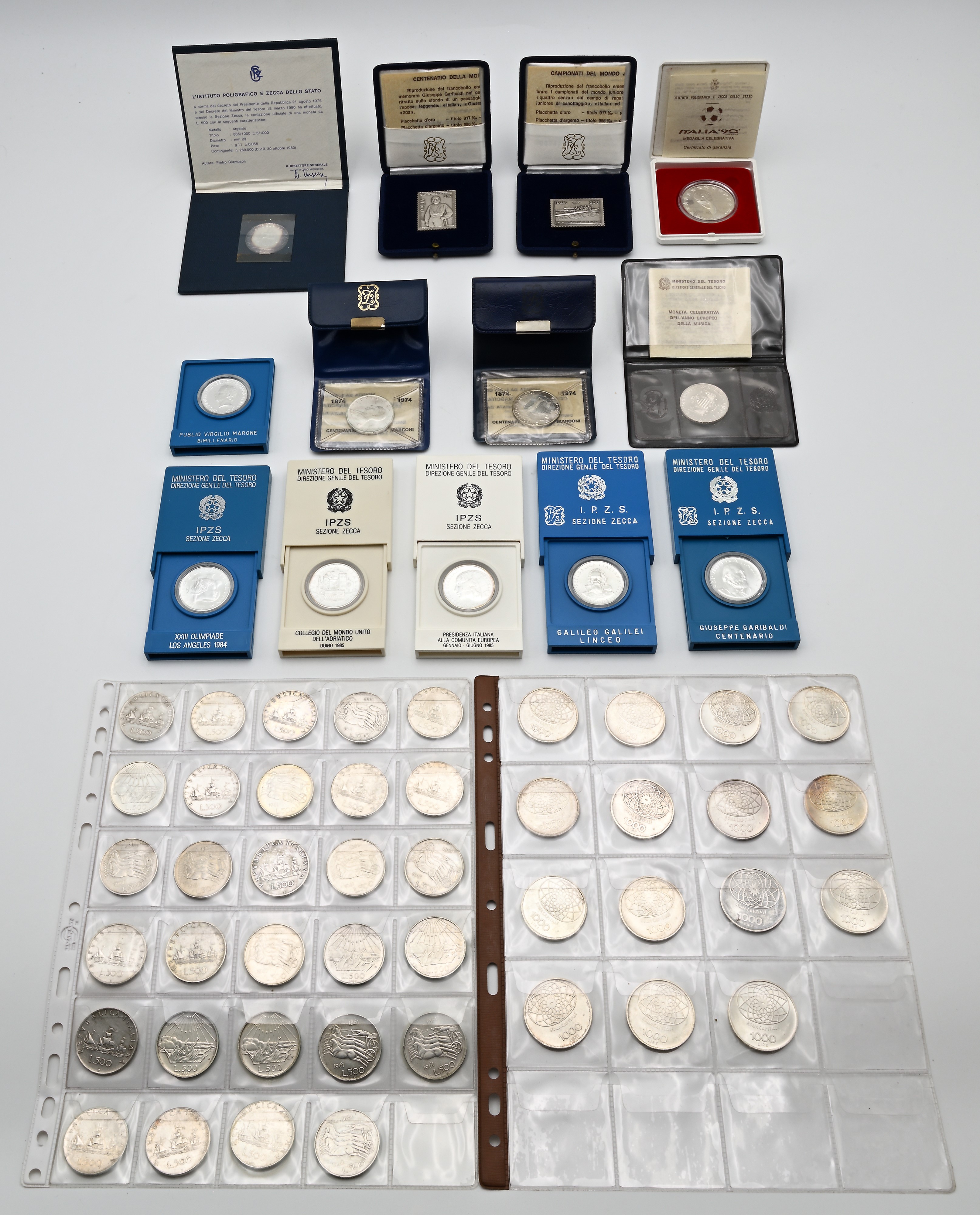Lotto Repubblica Italiana: 39 monete da 500 Lire, 15 monete da 1.000 Lire, Medaglia Italia '90 e 2 riproduzioni di francobolli IPZS