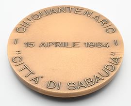 Medaglia in bronzo Cinquantenario Città di Sabaudia. 15 Aprile 1984. Opus Lorioli