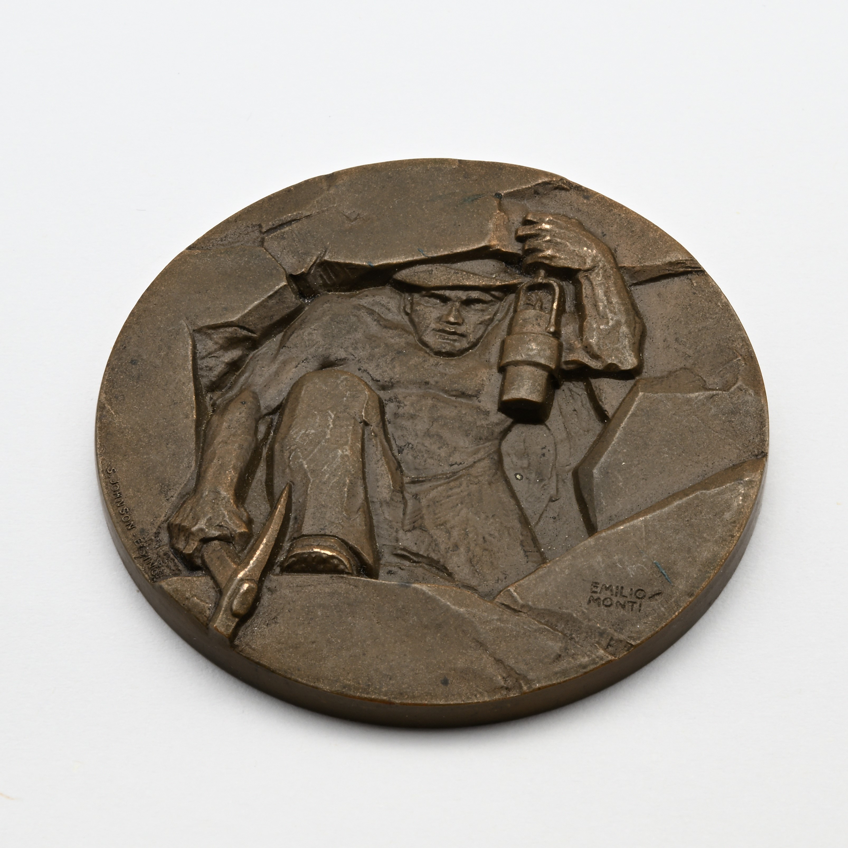Medaglia di Emilio Monti coniata nel 1956 da Johnson di Milano per ricordare il cinquantesimo anniversario dell'inaugurazione del traforo