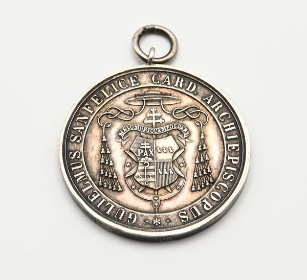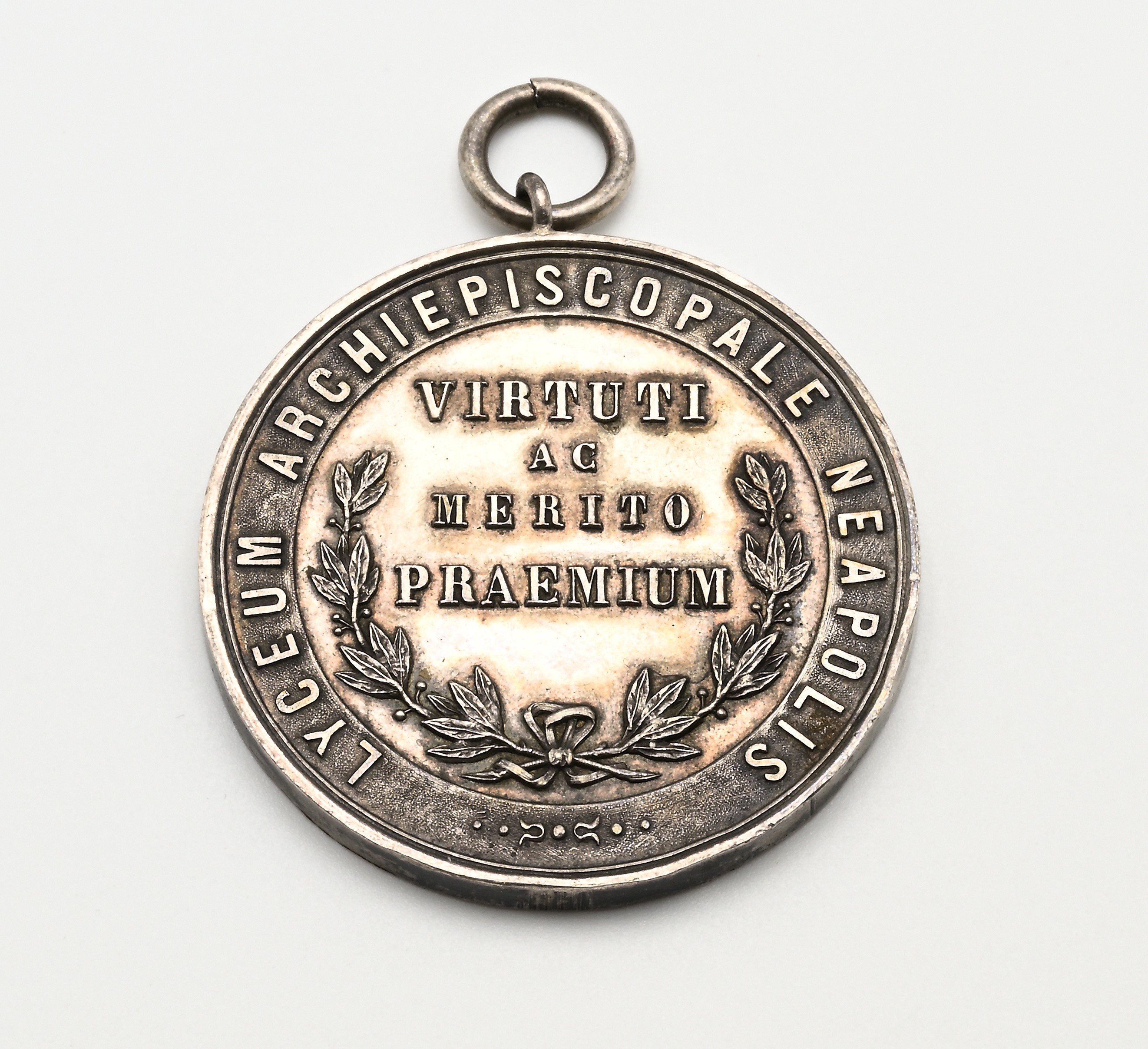 Medaglia premio "Virtù e merito" in argento del Lyceum Archiepiscopale Neapolis. Guglielmo Sanfelice d'Acquavella (1834–1897), Seconda metà del XIX secolo