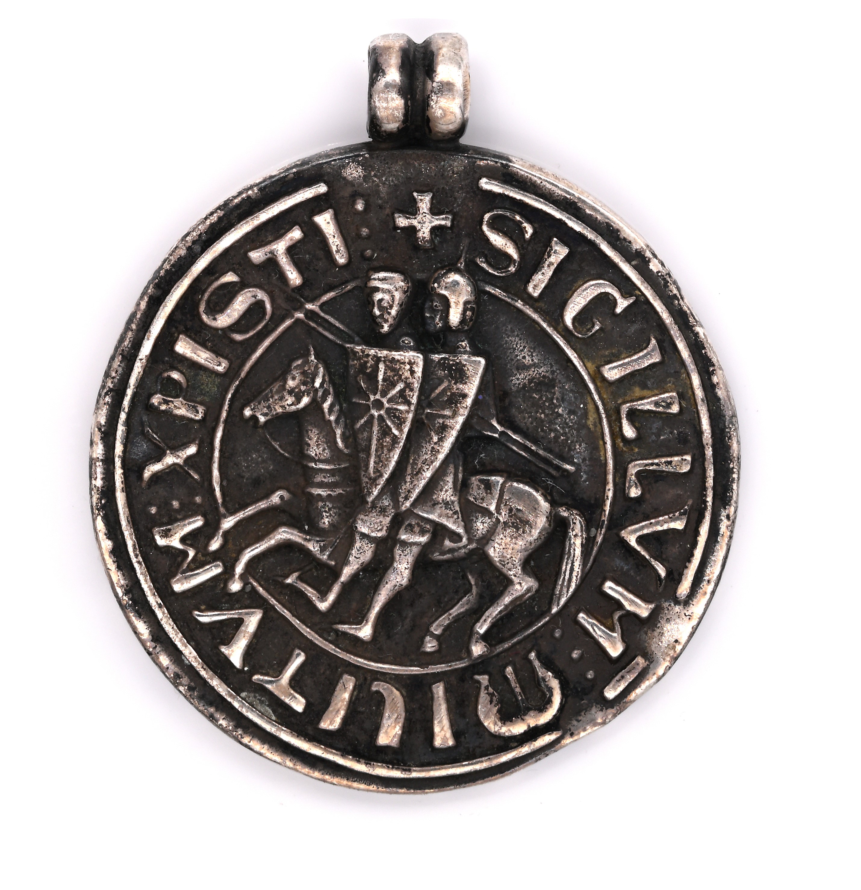 Medaglia uniface con la riproduzione del sigillo dei templari in argento 925/000