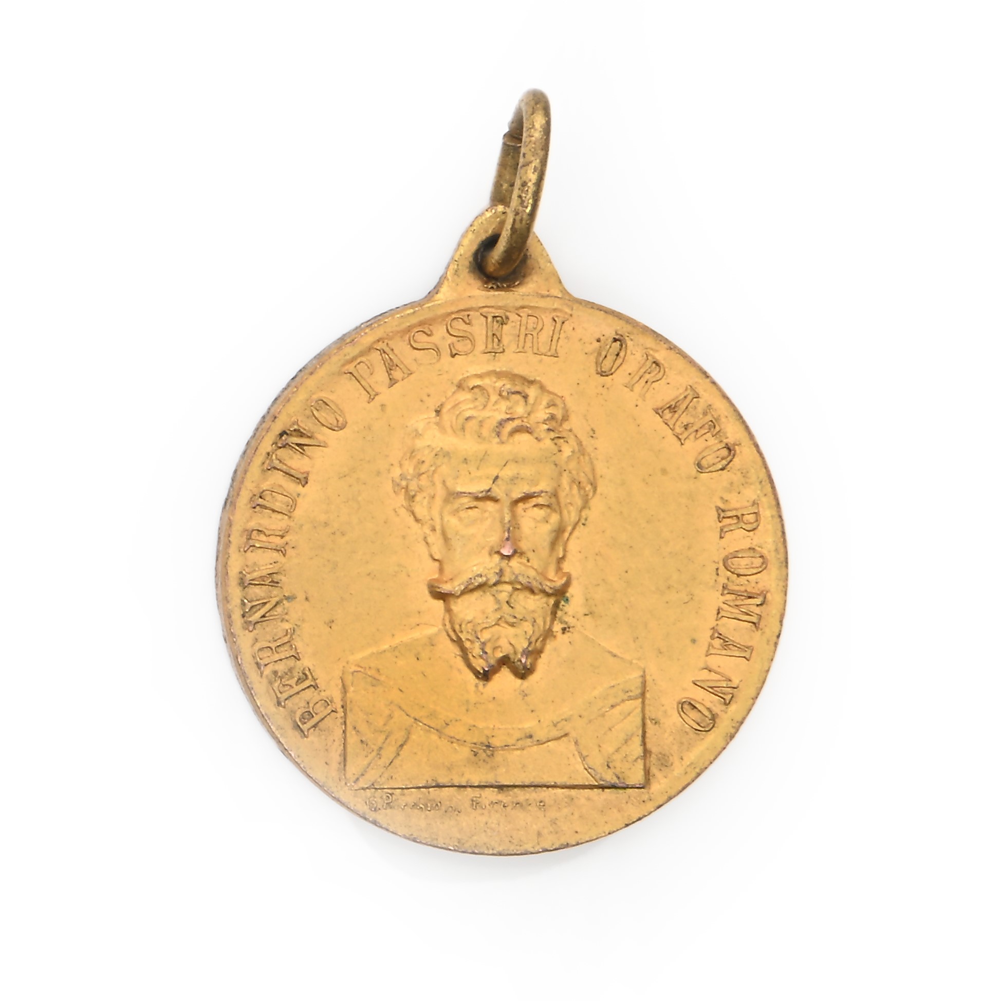 Medaglietta in bronzo dorato Società di Mutuo Soccorso Orafi di Roma nel cinquantenario 1863-1913 in onore di Bernardino Passeri orafo romano