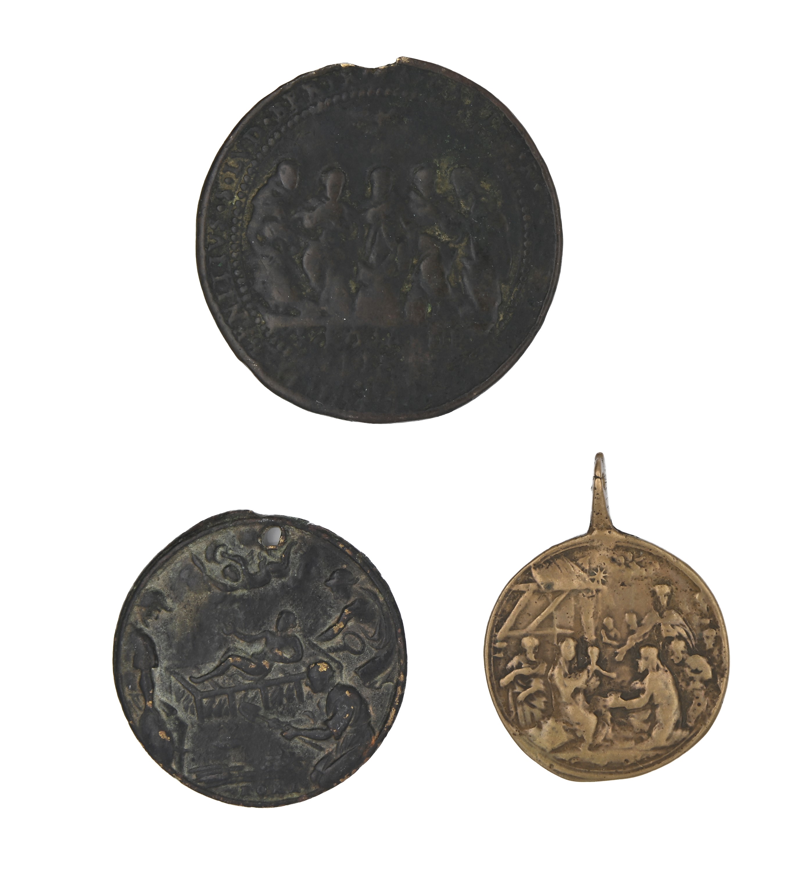Stato Pontificio - 2 medaglie devozionali in bronzo emesse per l'Anno Santo e 1 medaglia devozionale in bronzo con San Brunone e San Lorenzo del XVII/XVIII secolo