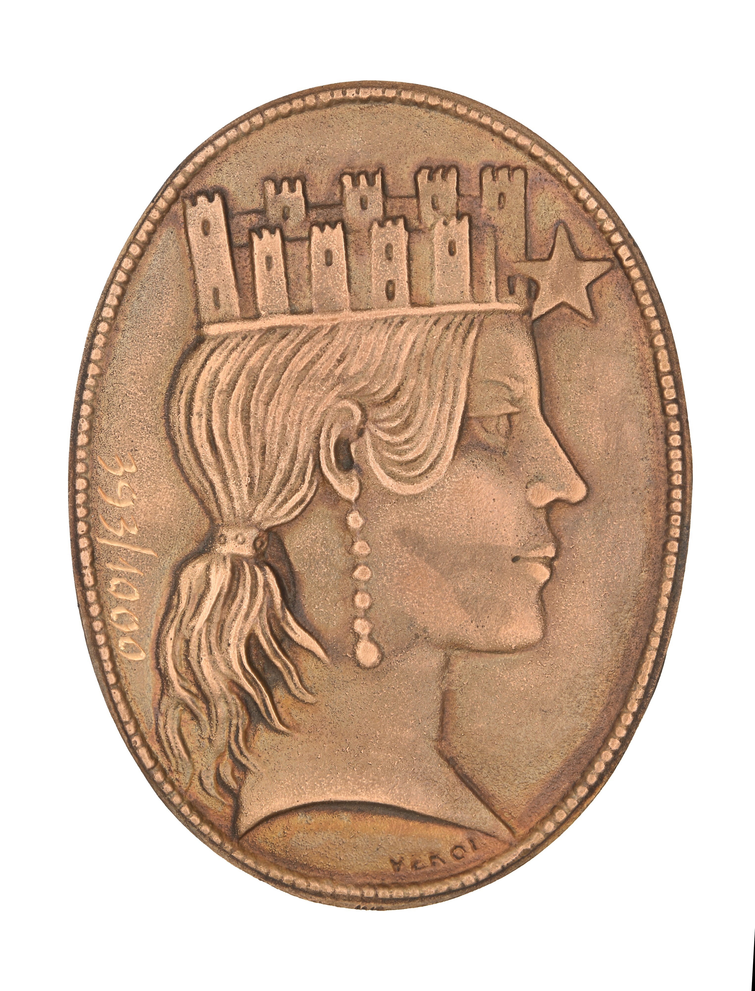 Guido Veroi - Placchetta ovale uniface in bronzo con l'Italia Turrita