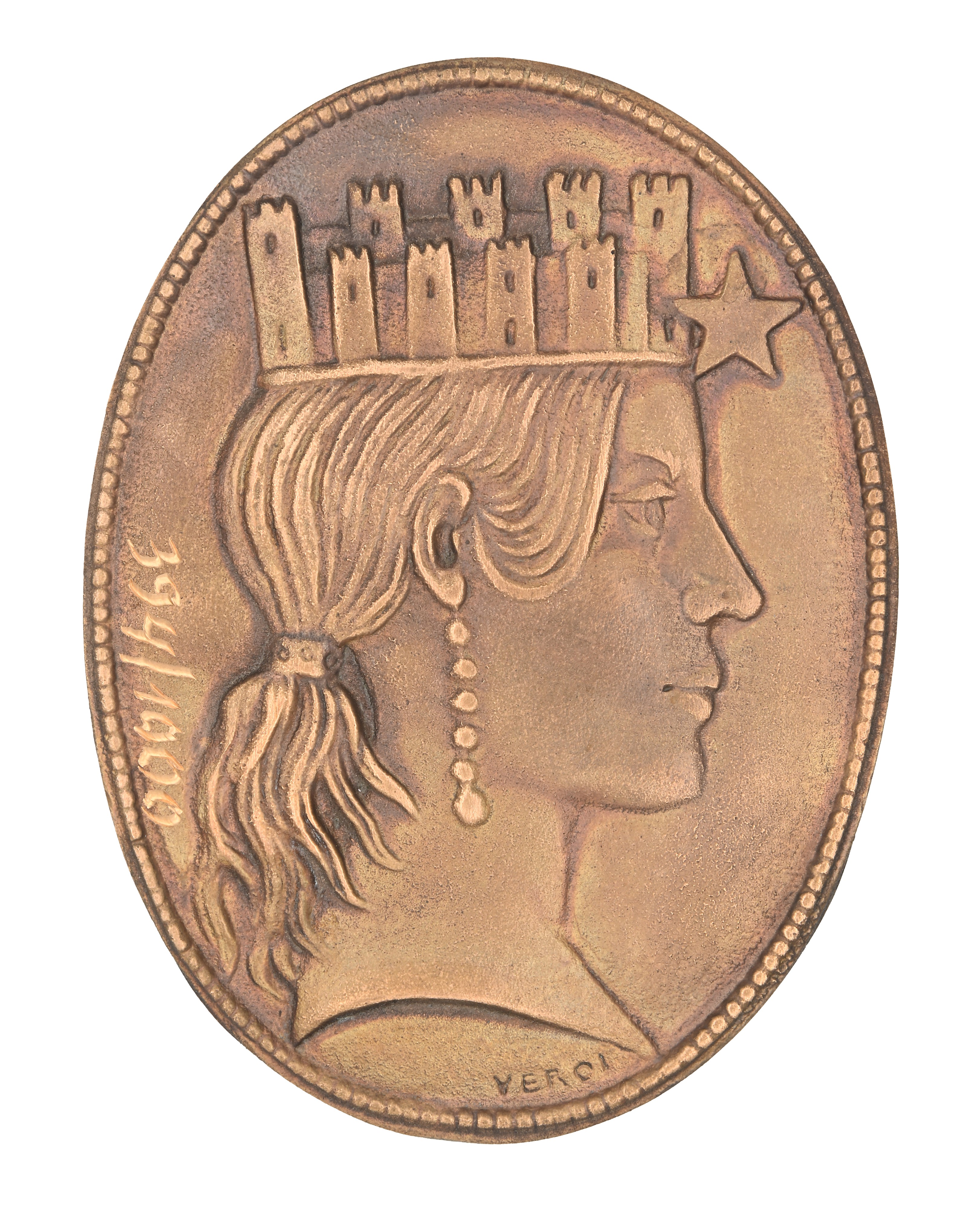Guido Veroi - Placchetta ovale uniface in bronzo con l'Italia Turrita