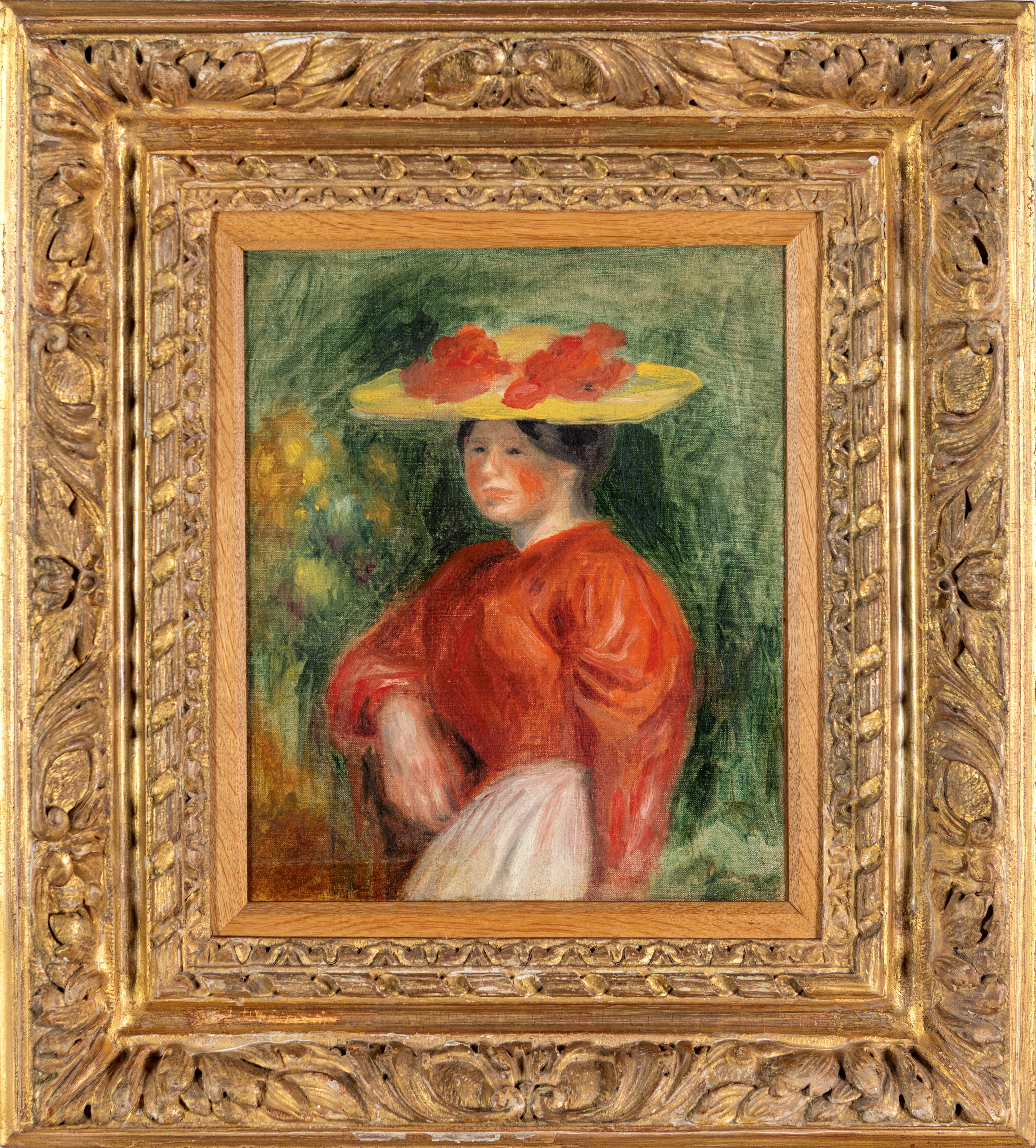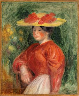 Jeune femme au corsage rouge et au chapeau jaune, 1900