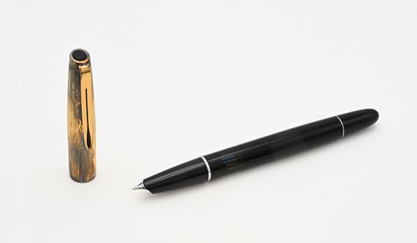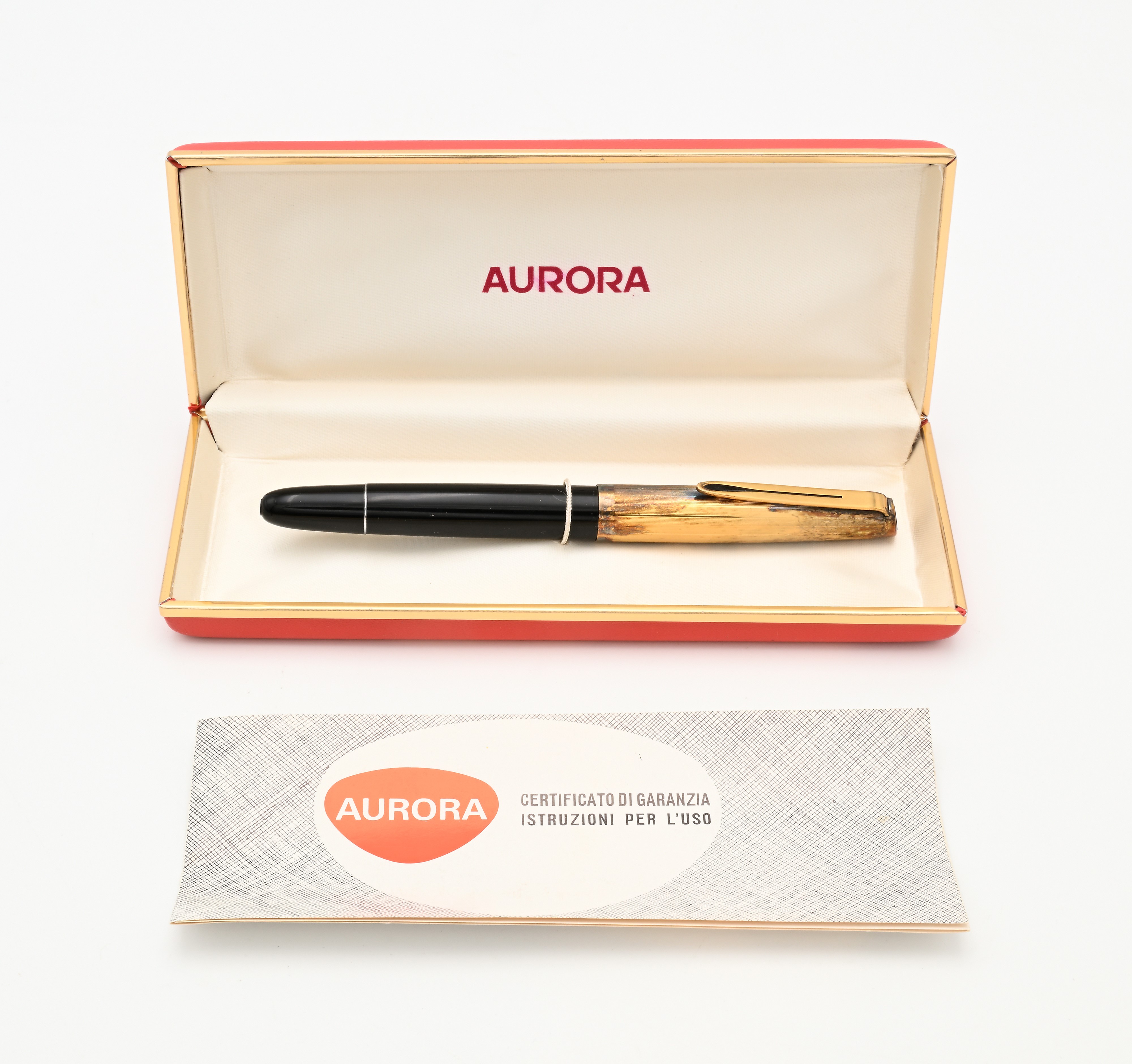 Aurora 88K - Penna stilografica in vernice nera con cappuccio placcato in oro giallo 18 Kt