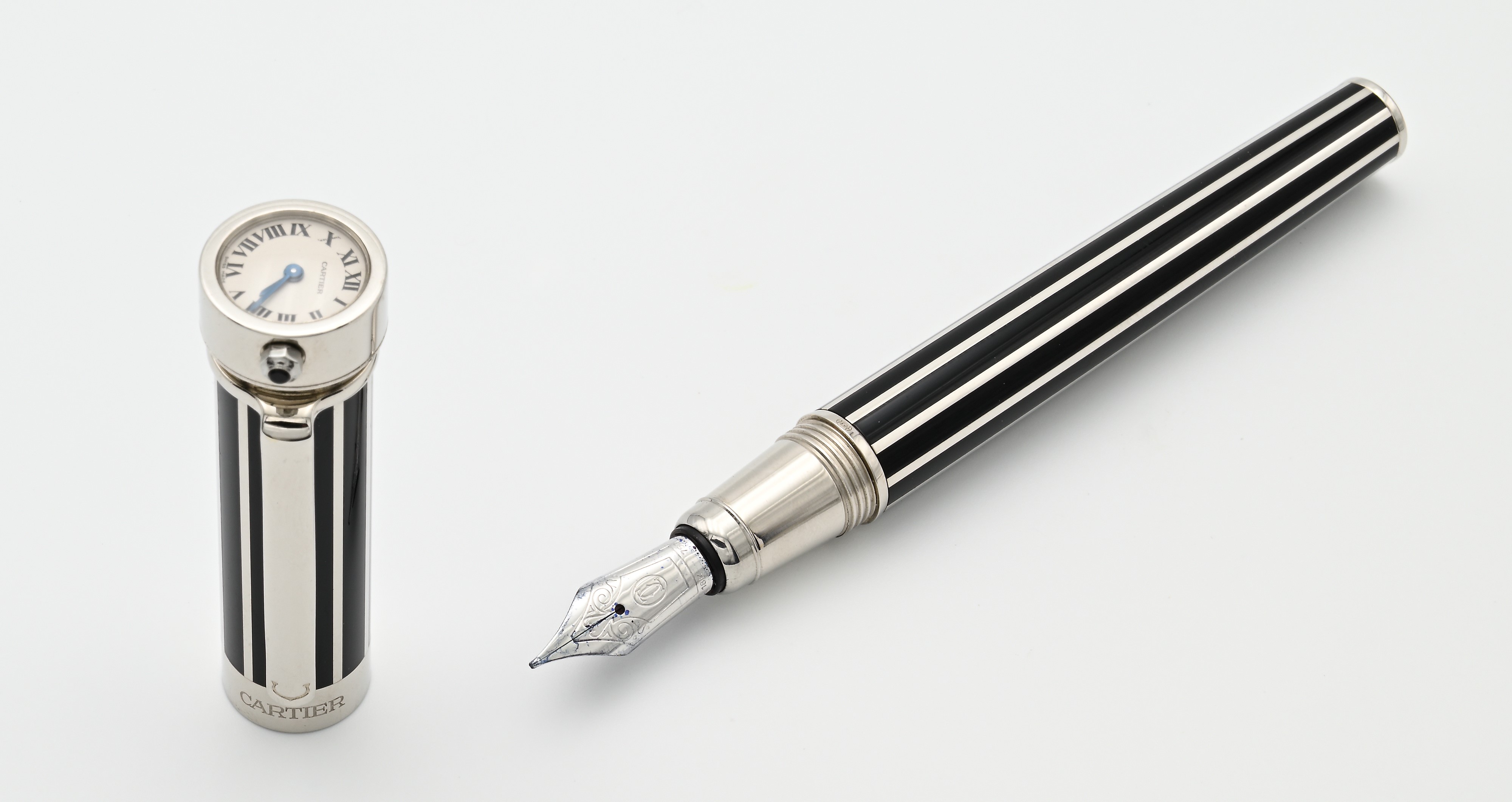 Cartier Limited Edition ST190007 (Esemplare 0172 su 2.000) - Penna Stilografica in metallo placcato platino e lacca nera con orologio incorporato nel cappuccio