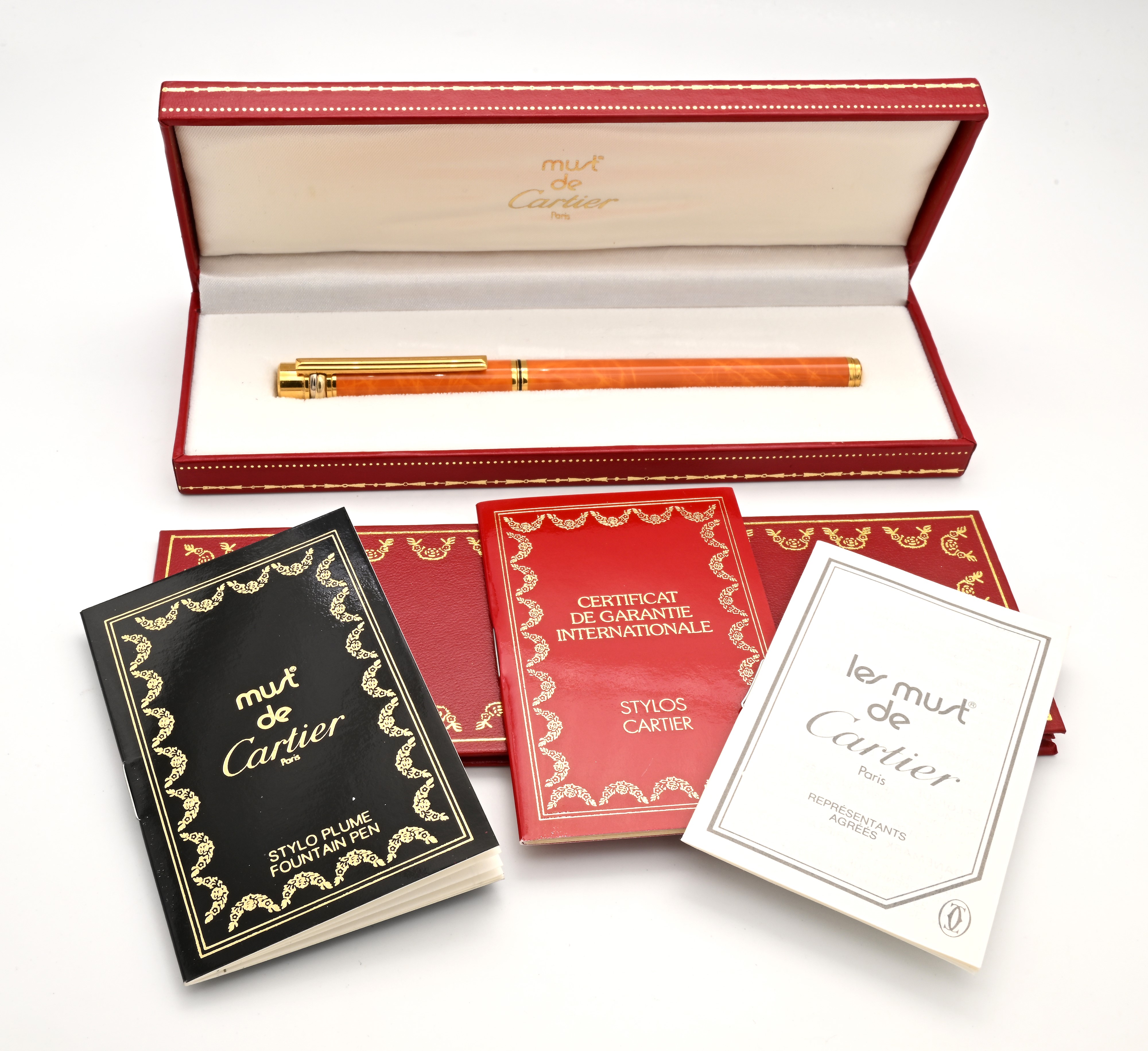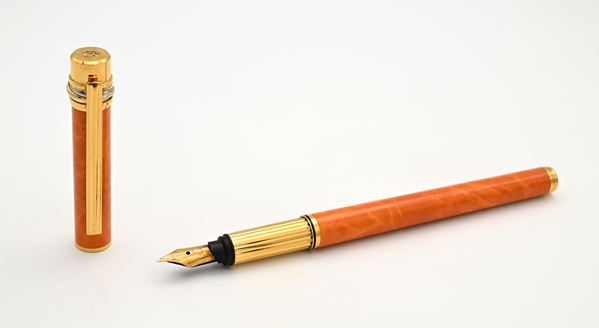 Cartier Must de - Penna stilografica in metallo placcato in oro e smalto marmorizzato arancione