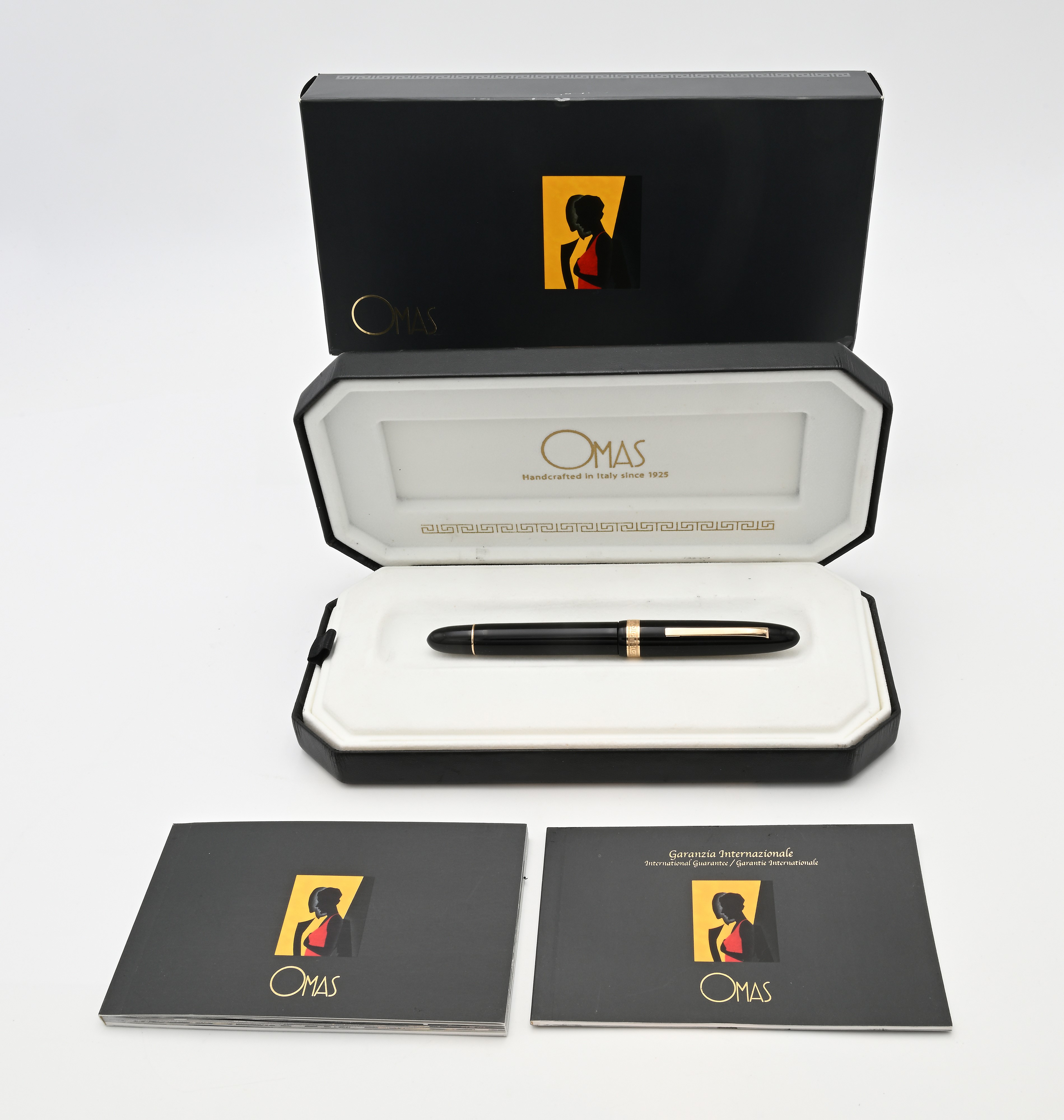 Omas Extra Ogiva - Penna stilografica in resina nera con particolari dorati Edizione speciale per il Ministero degli Affari Esteri, anni '80