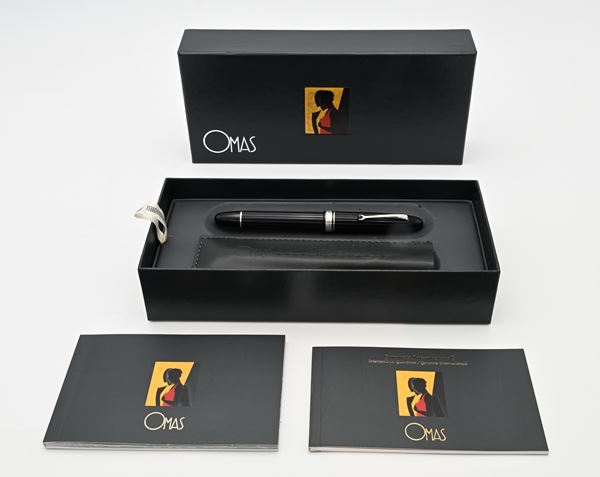 Omas Extra Ogiva 557/S - Penna stilografica in resina nera con particolari rodiati (High-Tech)
