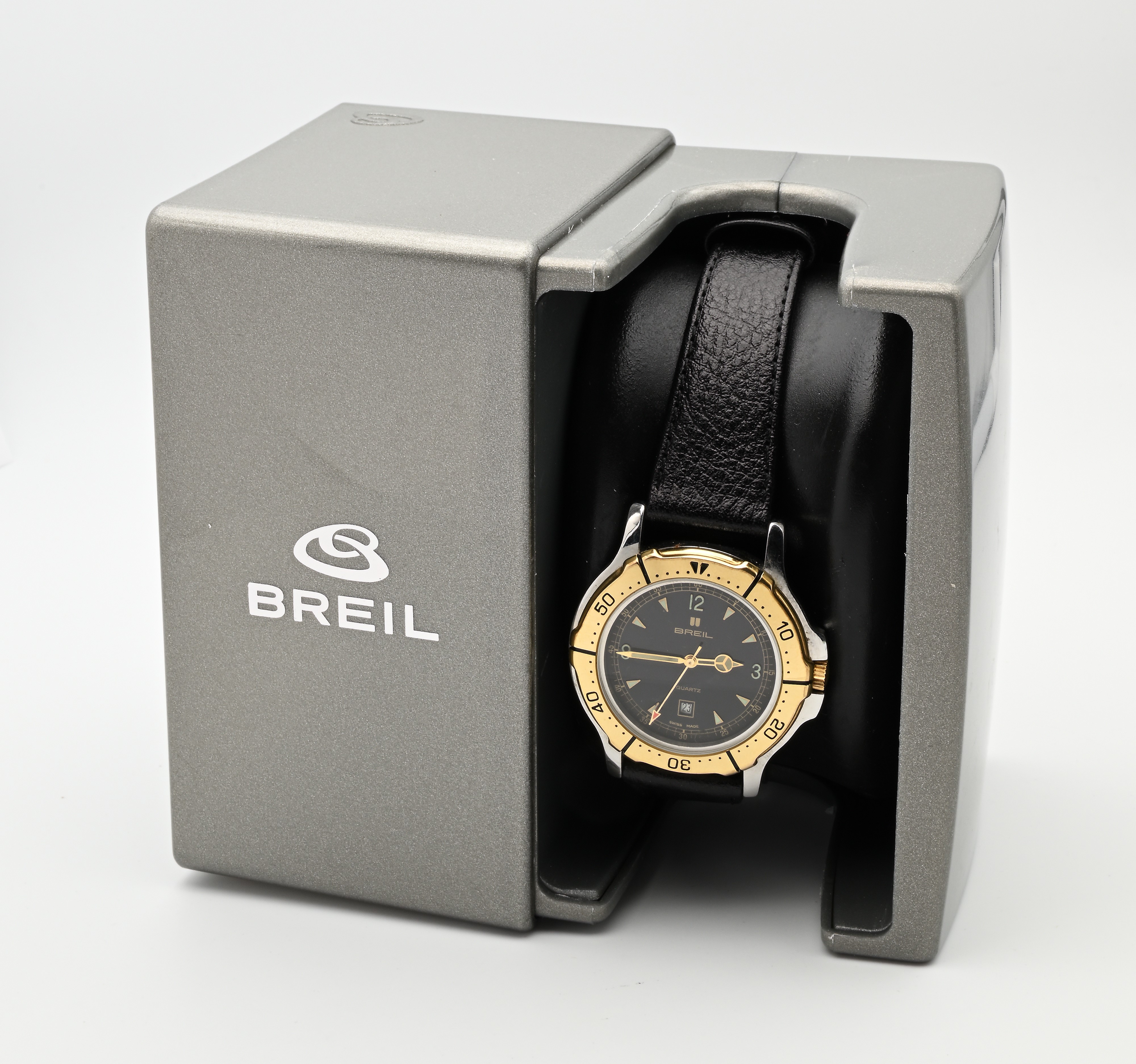 Breil 53977-005 - Orologio da polso al quarzo con calendario da uomo in acciaio e oro, anni '90 / 2000