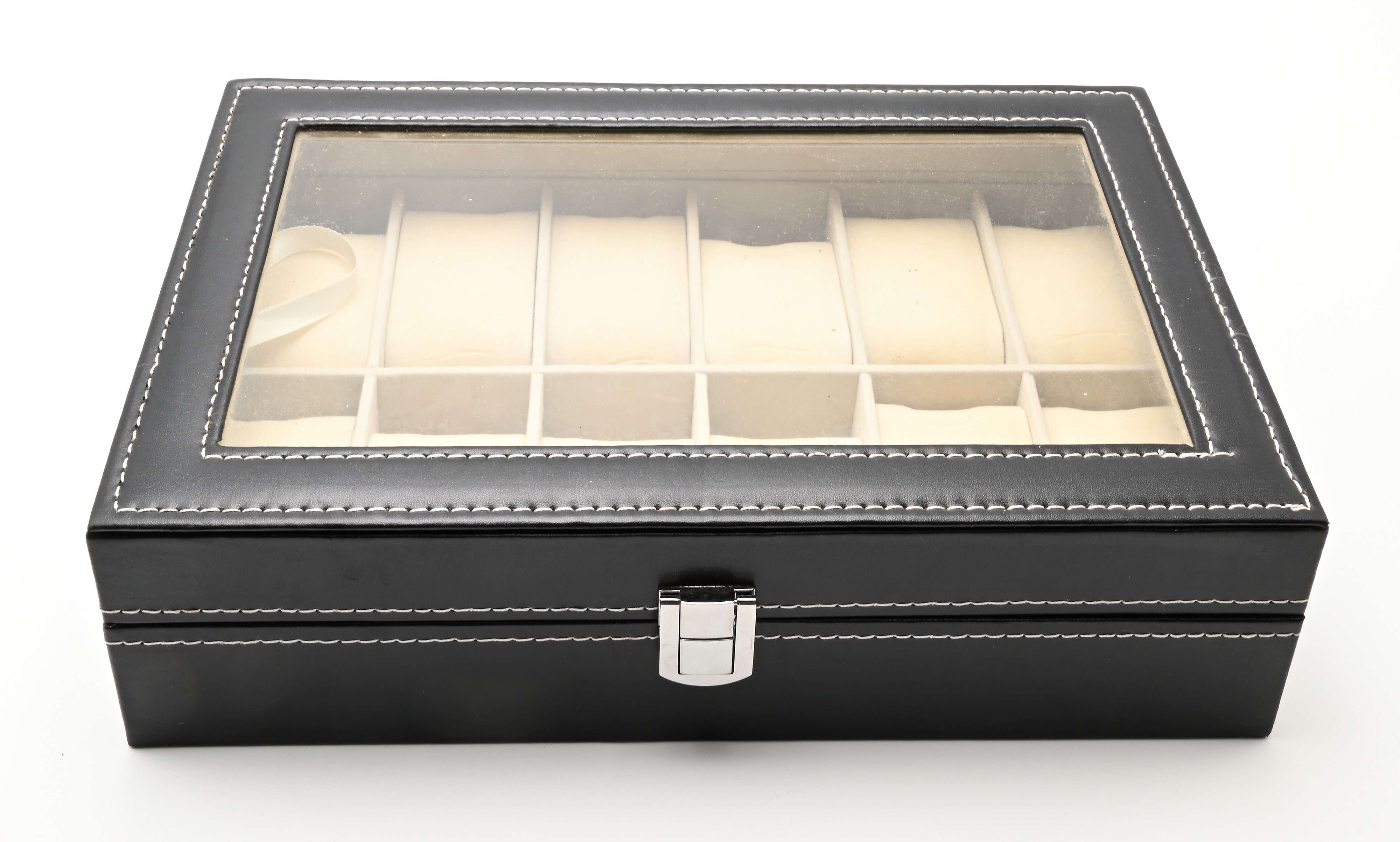 Cassetta porta orologi in pelle con 12 scomparti ed Interno in panno