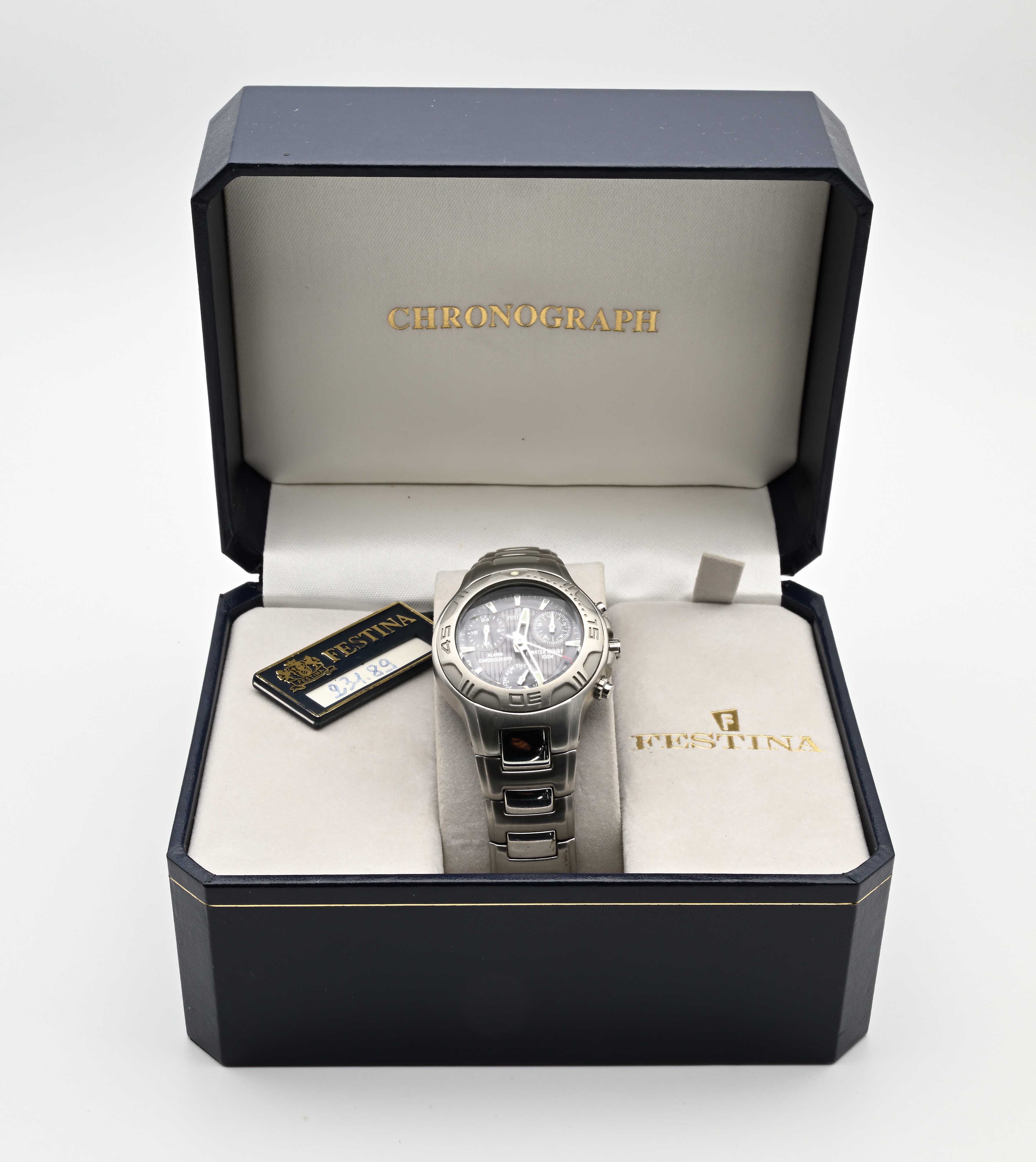 Festina Alarm Chronograph F6643/4 - Orologio da polso Cronografo con datario al quarzo da uomo in acciaio con bracciale in acciaio originale, anni 2000