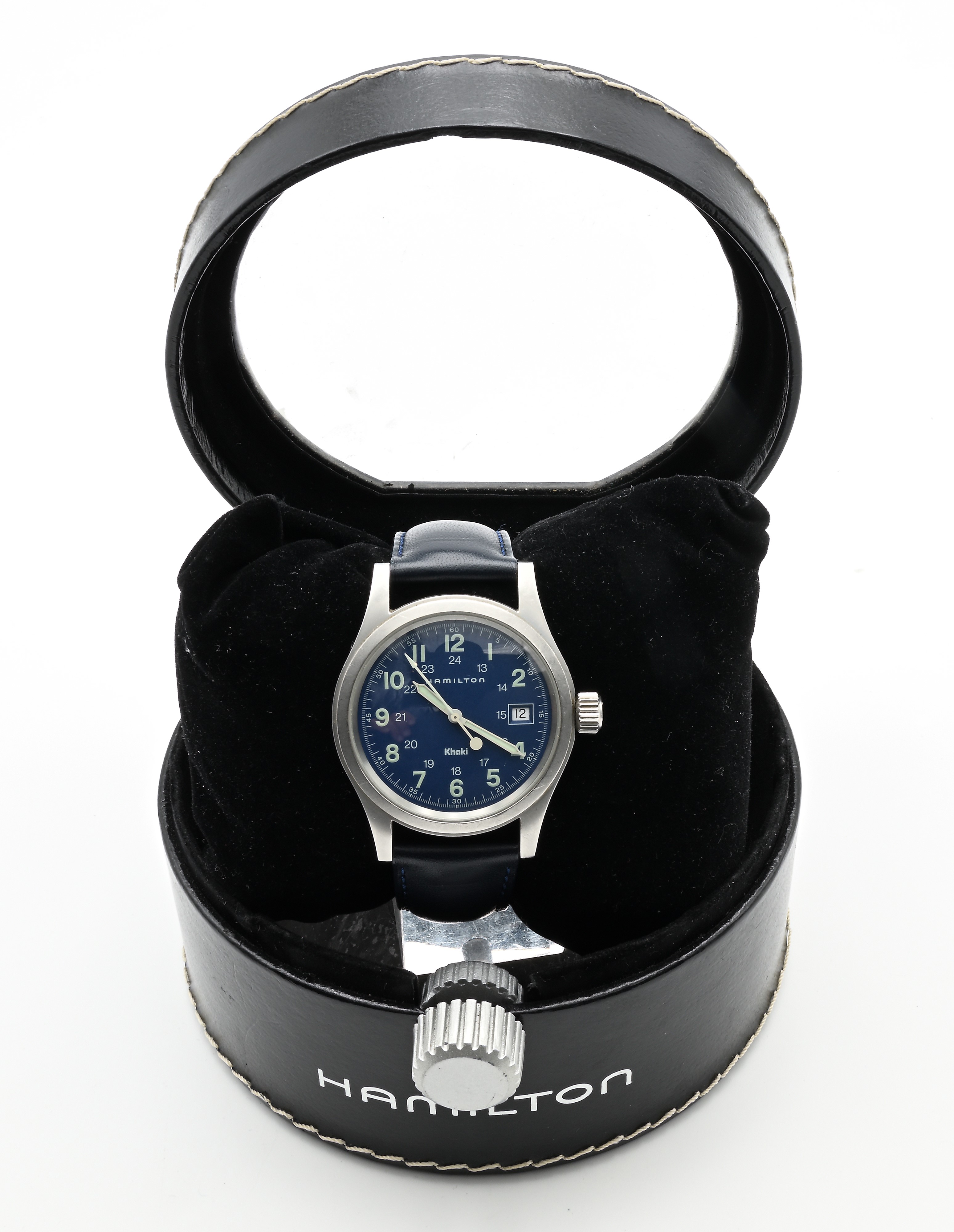 Hamilton Khaki 6361 - Orologio da polso da uomo al quarzo in acciaio con quadrante blu, fine anni '90