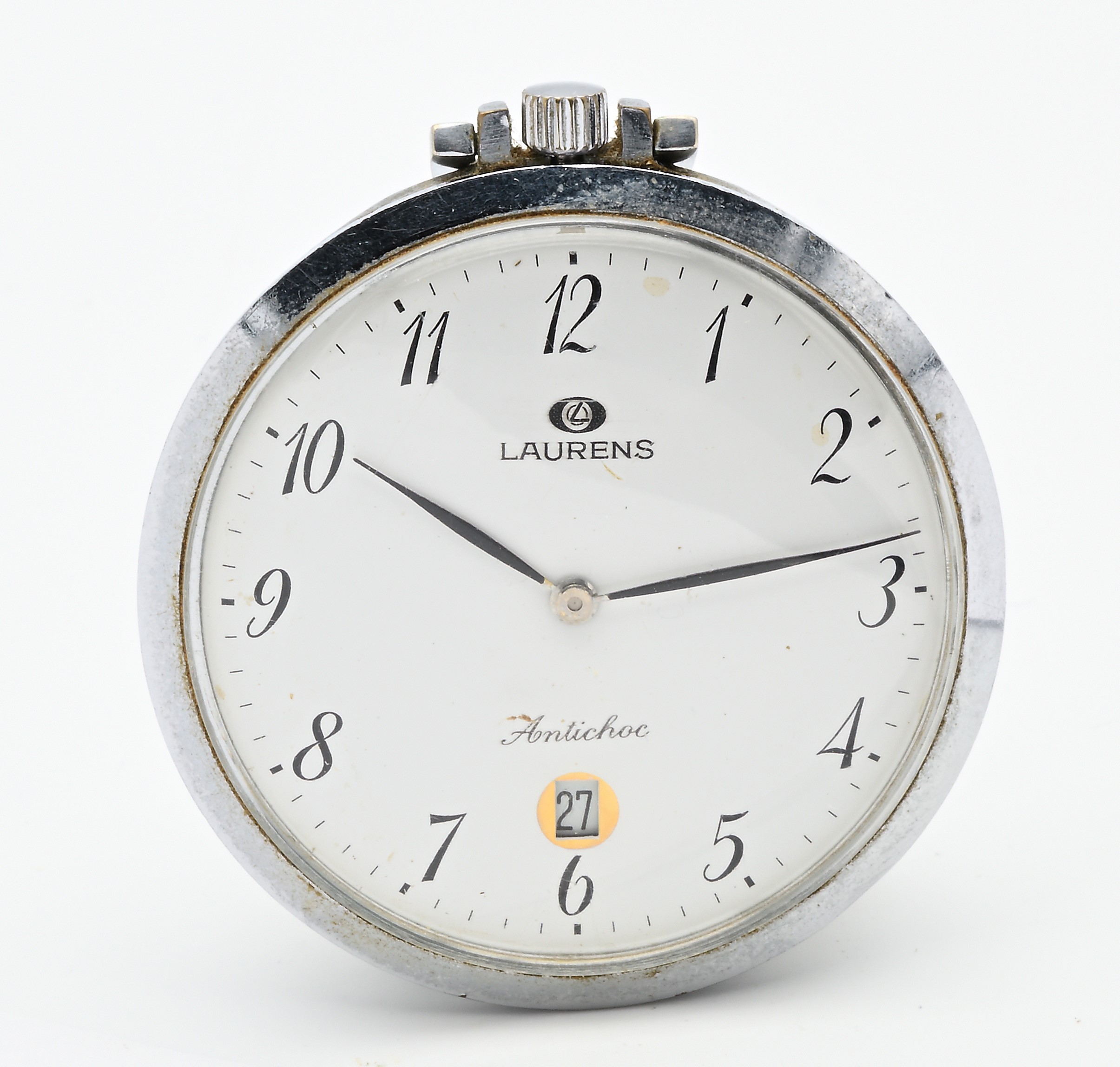 Laurens Antichoc (Cal Cupillard 233.68E) - Orologio da tasca remontoir con datario in metallo cromato, anni '70