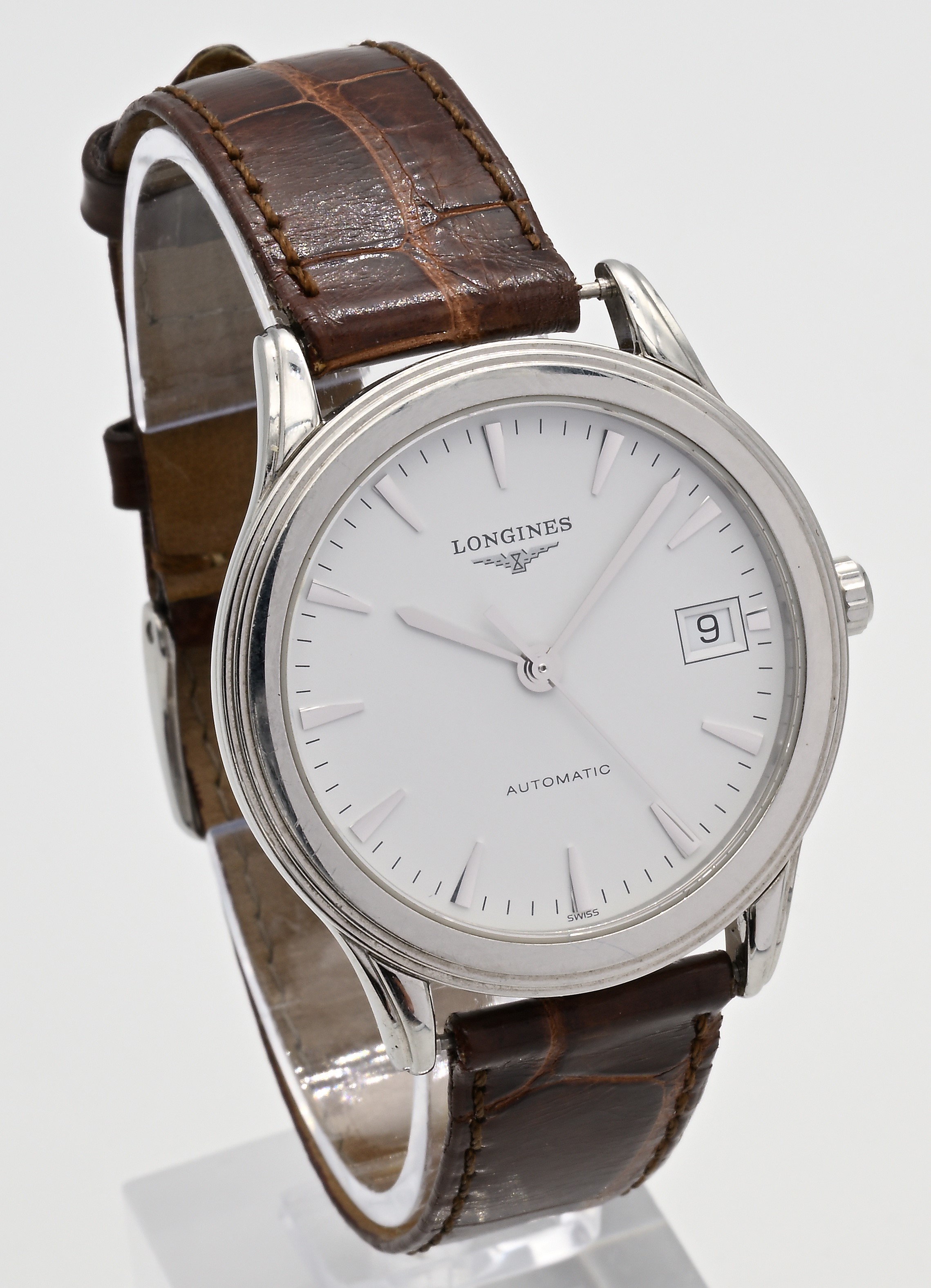 Longines Flagship L619.2 - Orologio da polso automatico da uomo con datario in acciaio e fondo scheletrato (L4.774.4), 2000
