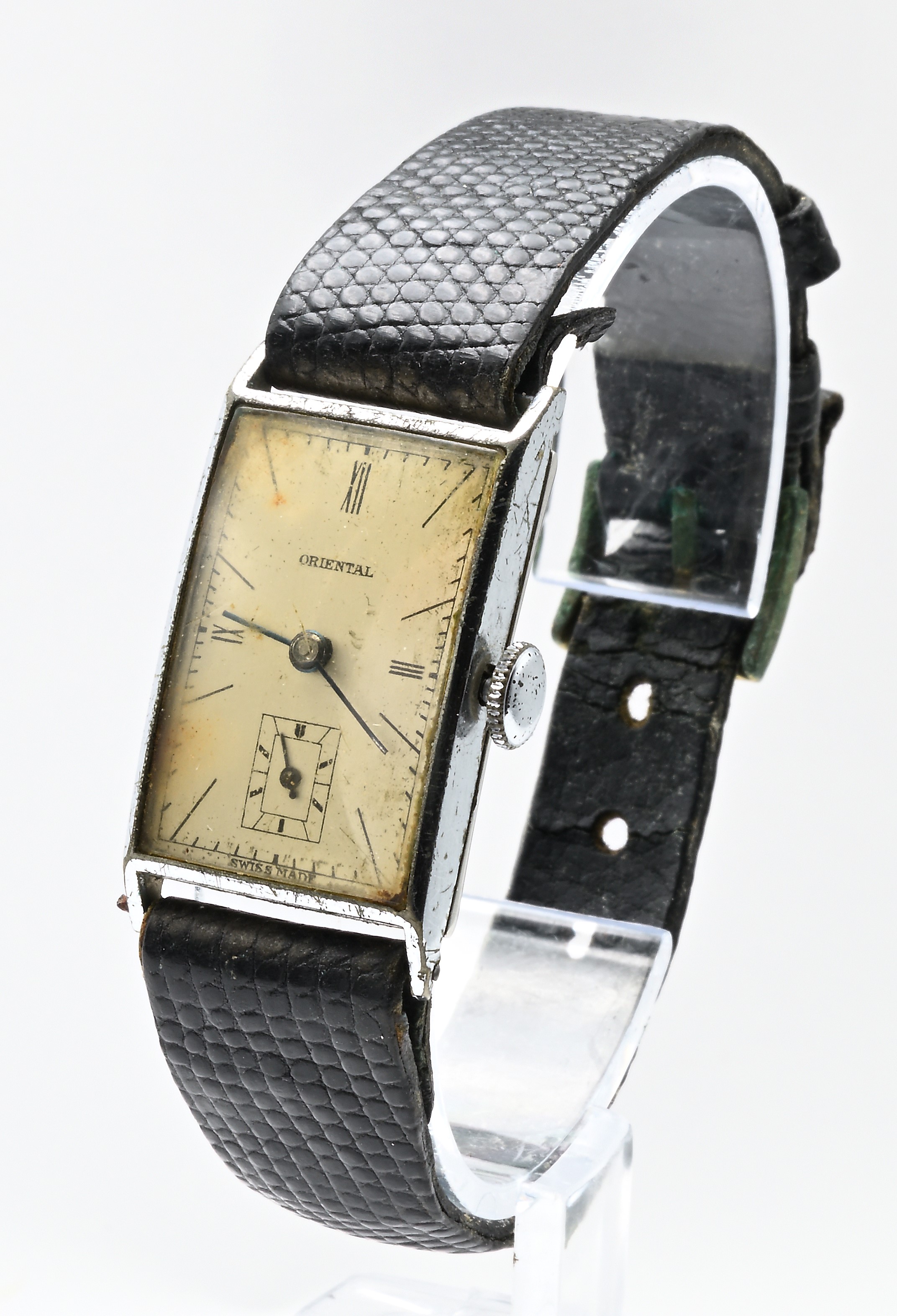 Oriental - Orologio svizzero da polso a carica manuale da uomo in metallo cromato con fondello in acciaio, anni '30