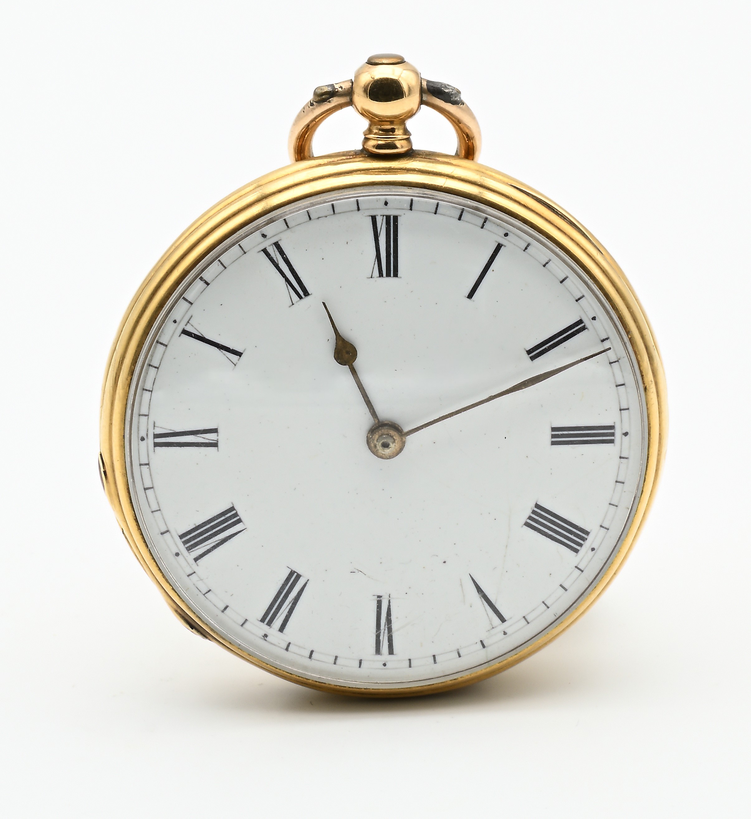 Orologio da tasca con carica a chiavetta con cassa in oro 18Kt decorata a guilloché ed incisioni a volute. Scappamento a cilindro, 1860 circa