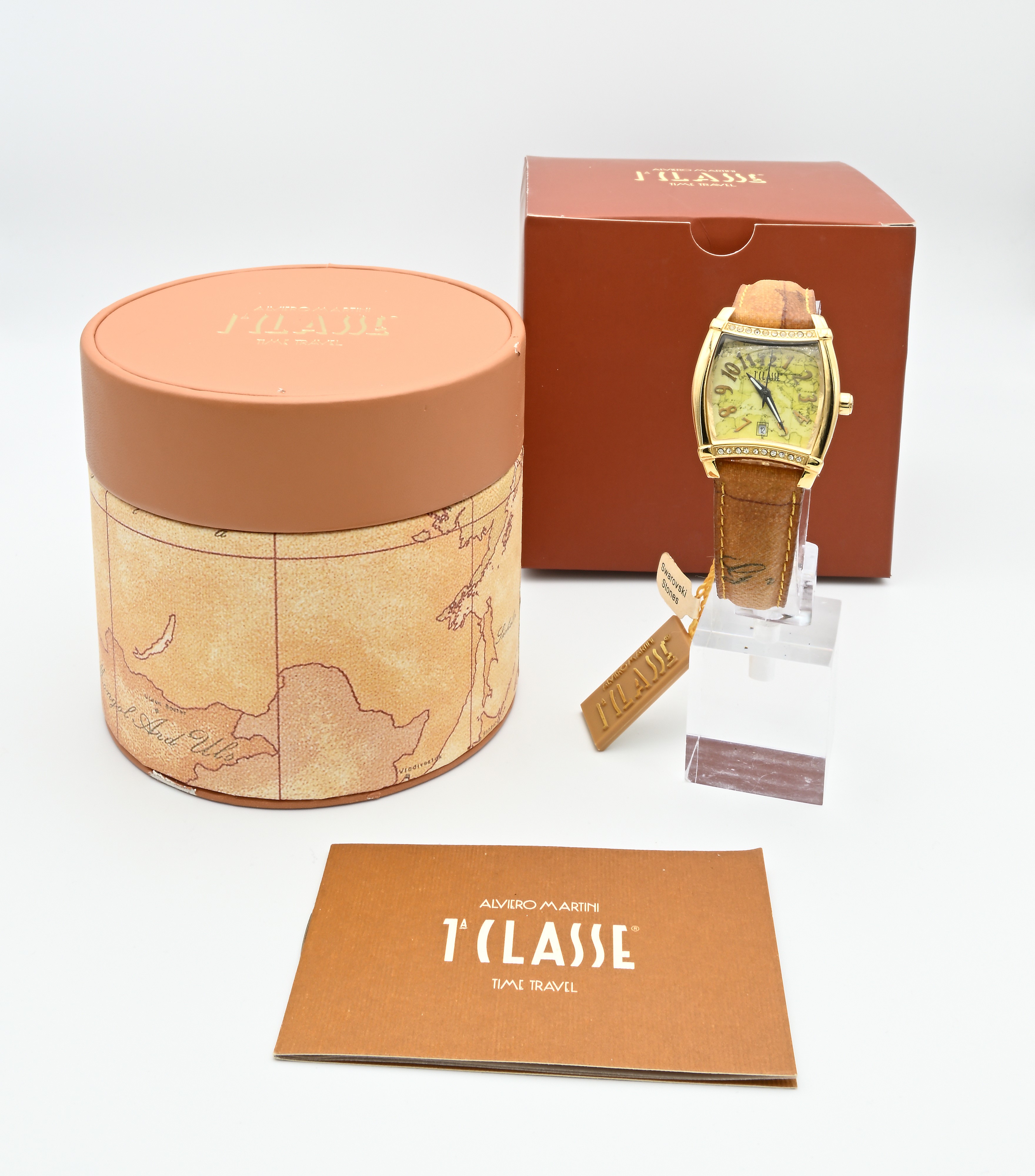 Prima Classe Alviero Martini PCD 300S/1VU - Orologio da polso al quarzo con datario da donna in metallo dorato con fondello in acciaio e Swarovsky sulla cassa, anni 2000