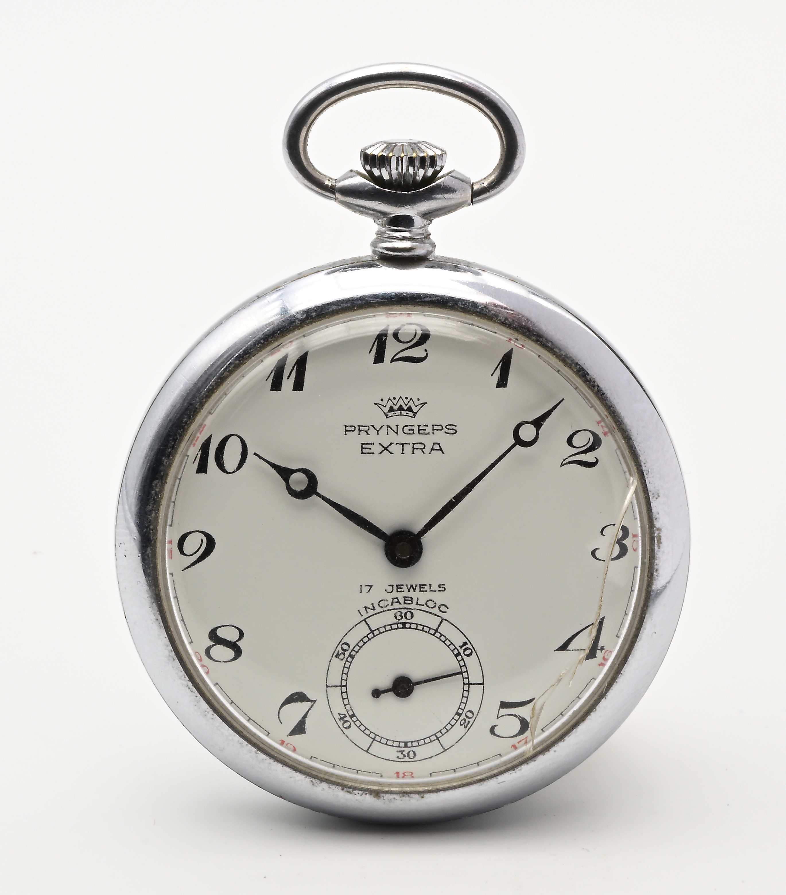 Pryngeps Extra (Cal. Unitas 6497) - Orologio da tasca remontoir in metallo cromato, anni '60