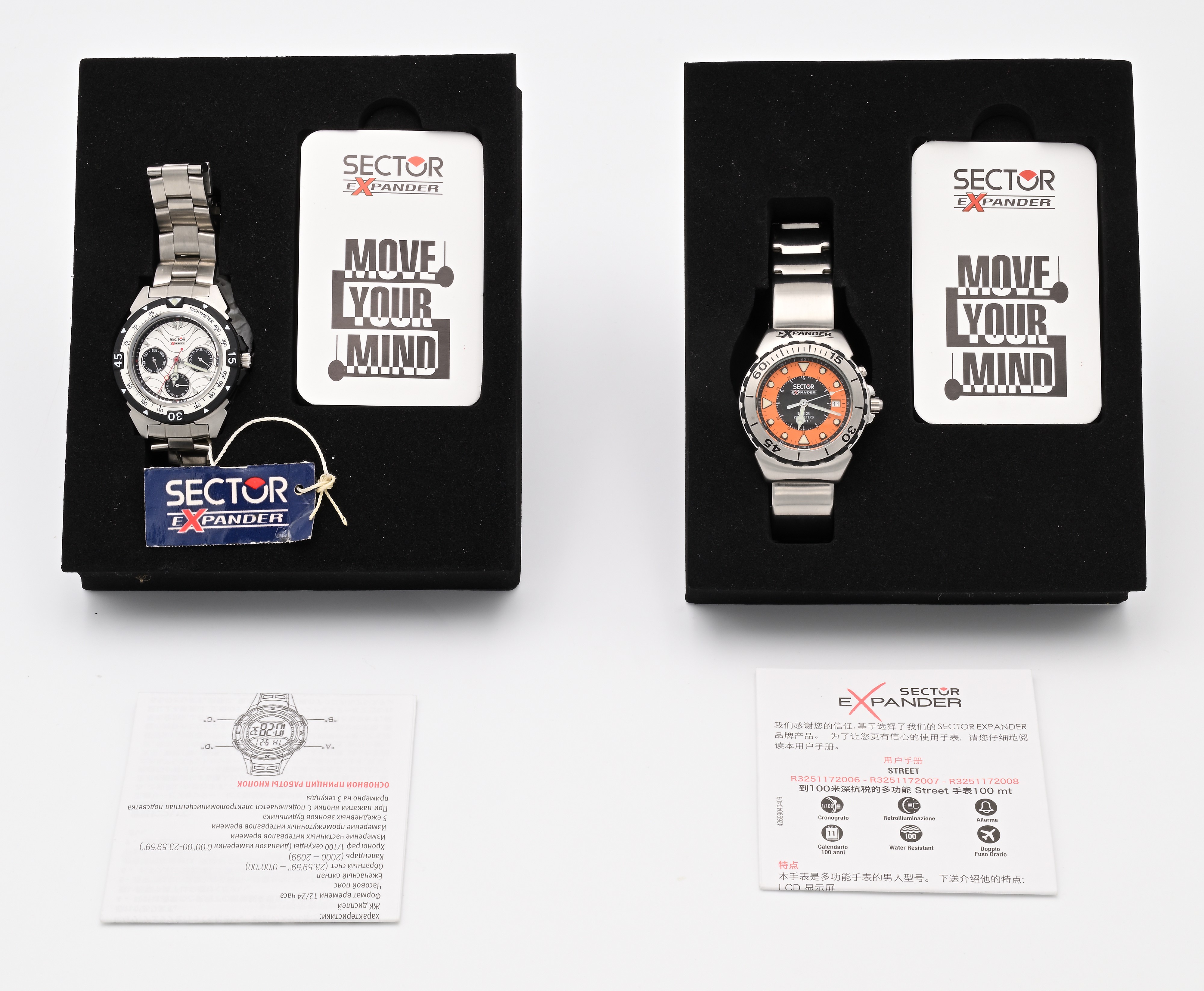 Sector Expander - 2 Orologi da polso al quarzo da uomo: Cronografo e Sub con datario in plastica e acciaio con cinturino in acciaio originale, anni '90
