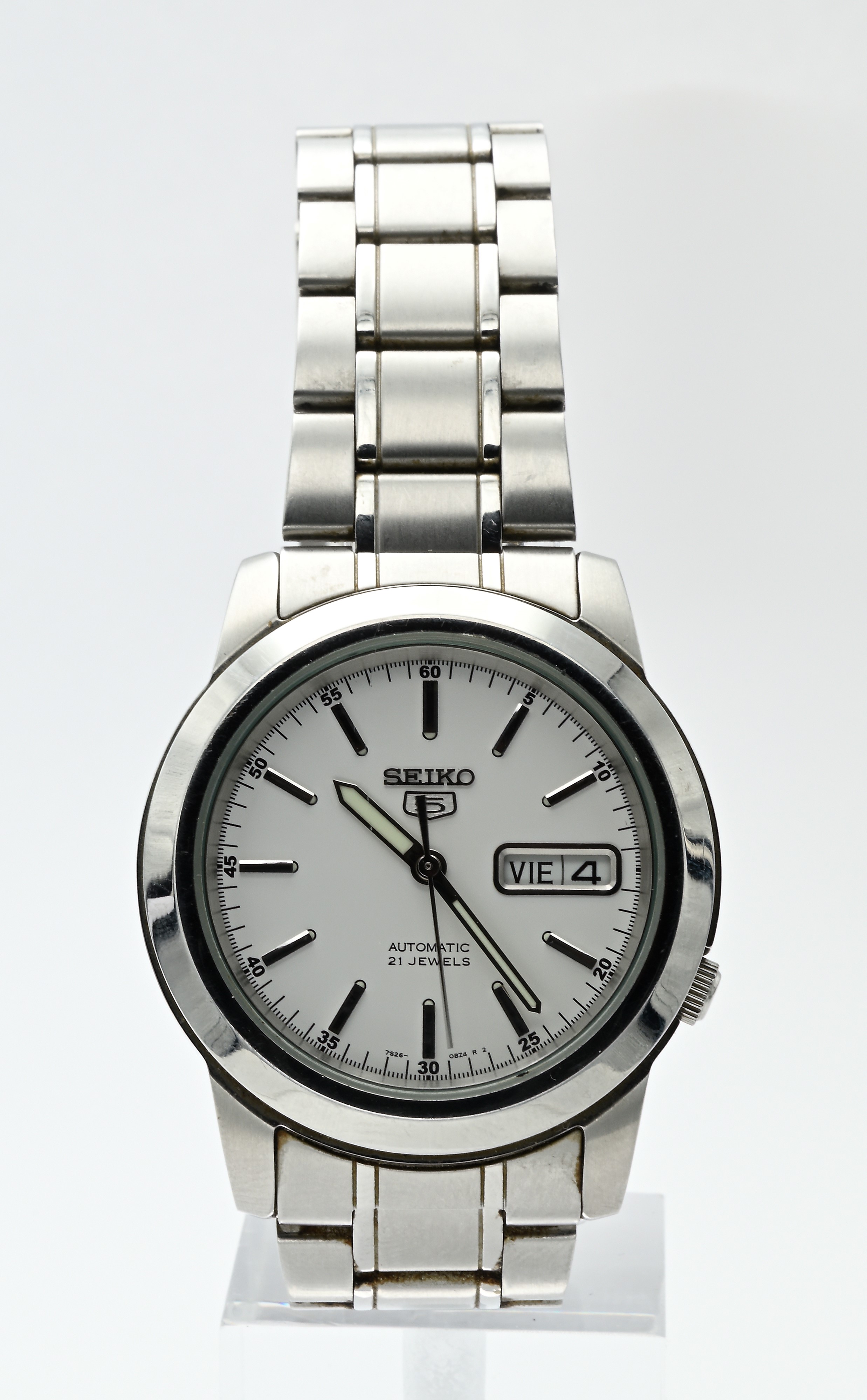 Seiko 5 Sports 7S26B 02W0- Orologio da polso automatico day-date da uomo in acciaio con fondello scheletrato. Con cinturino Seiko 5 Sports originale in acciaio, anni 2000