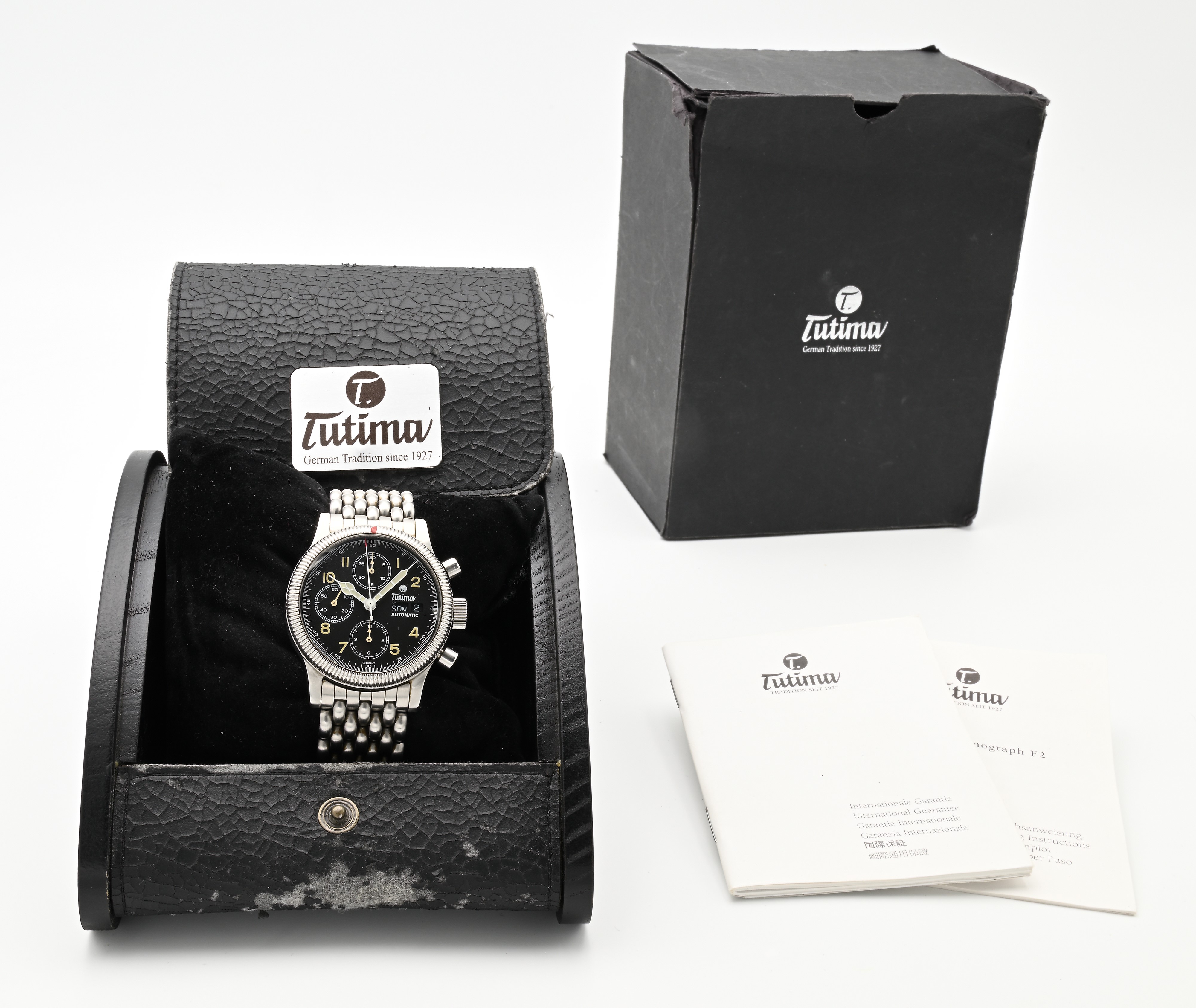 Tutima Flieger Chronograph F2 780 - Orologio da polso da uomo automatico Cronografo con datario n acciaio. Lancette ed indici fluorescenti. Con bracciale originale in acciaio, fine anni '90