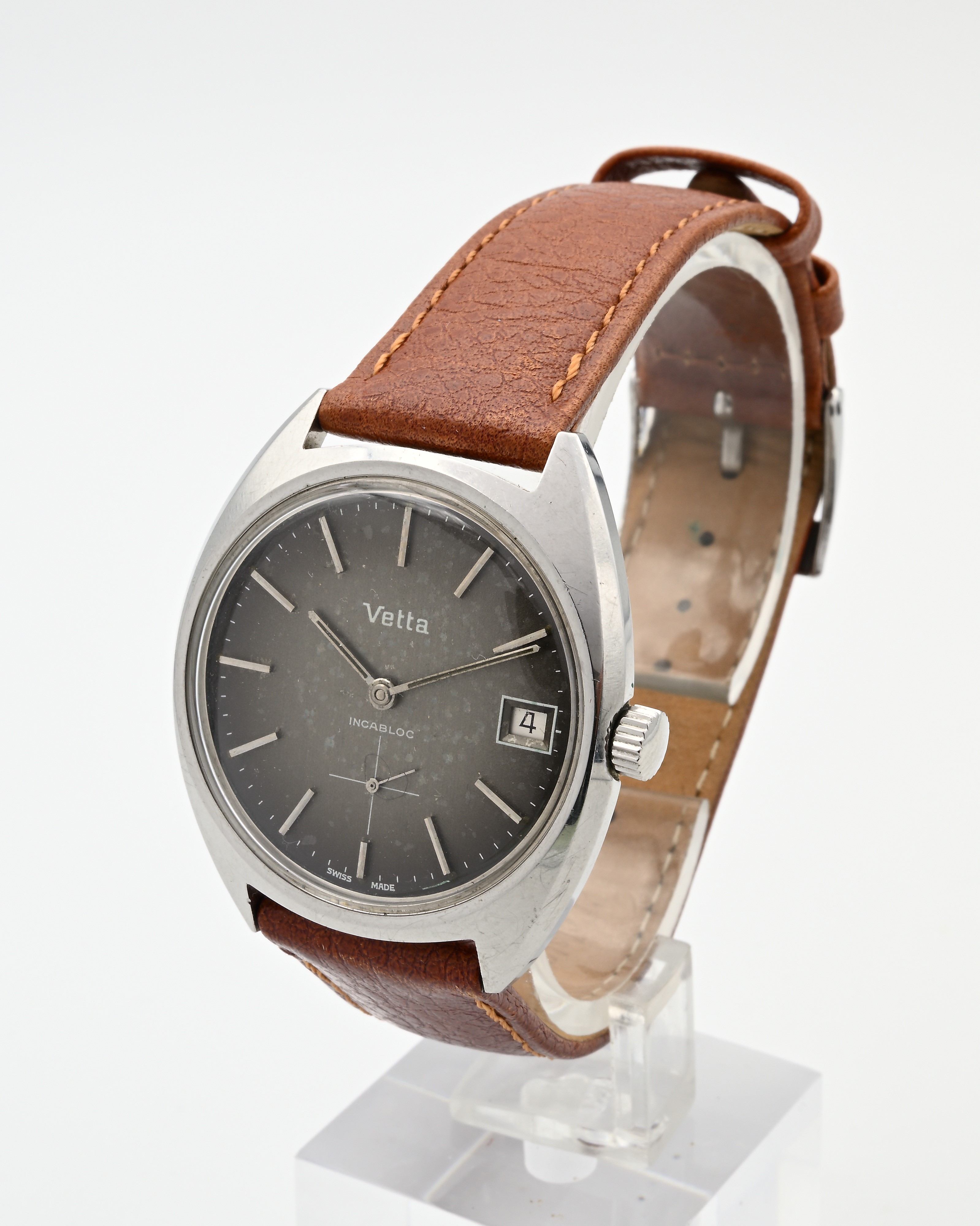 Vetta Cal. 056 Ref. 01-7056 0197 - Orologio da polso da uomo a carica manuale con datario in acciaio. Con fondello a vite, anni '70