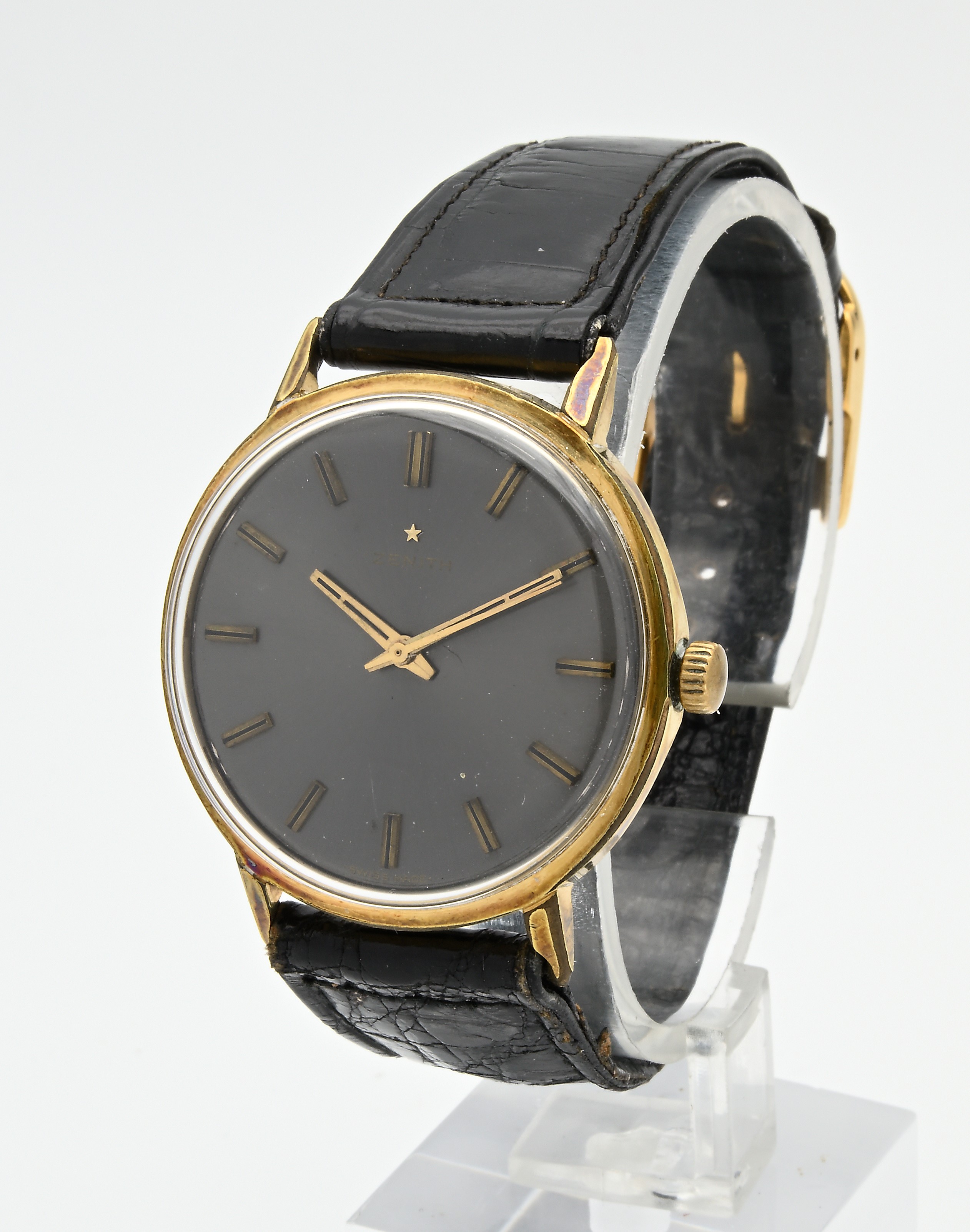 Zenith Cal. 2542 - Orologio da polso da uomo a carica manuale con cassa in metallo placcato oro giallo e fondello in acciaio. Quadrante fumè, anni '60