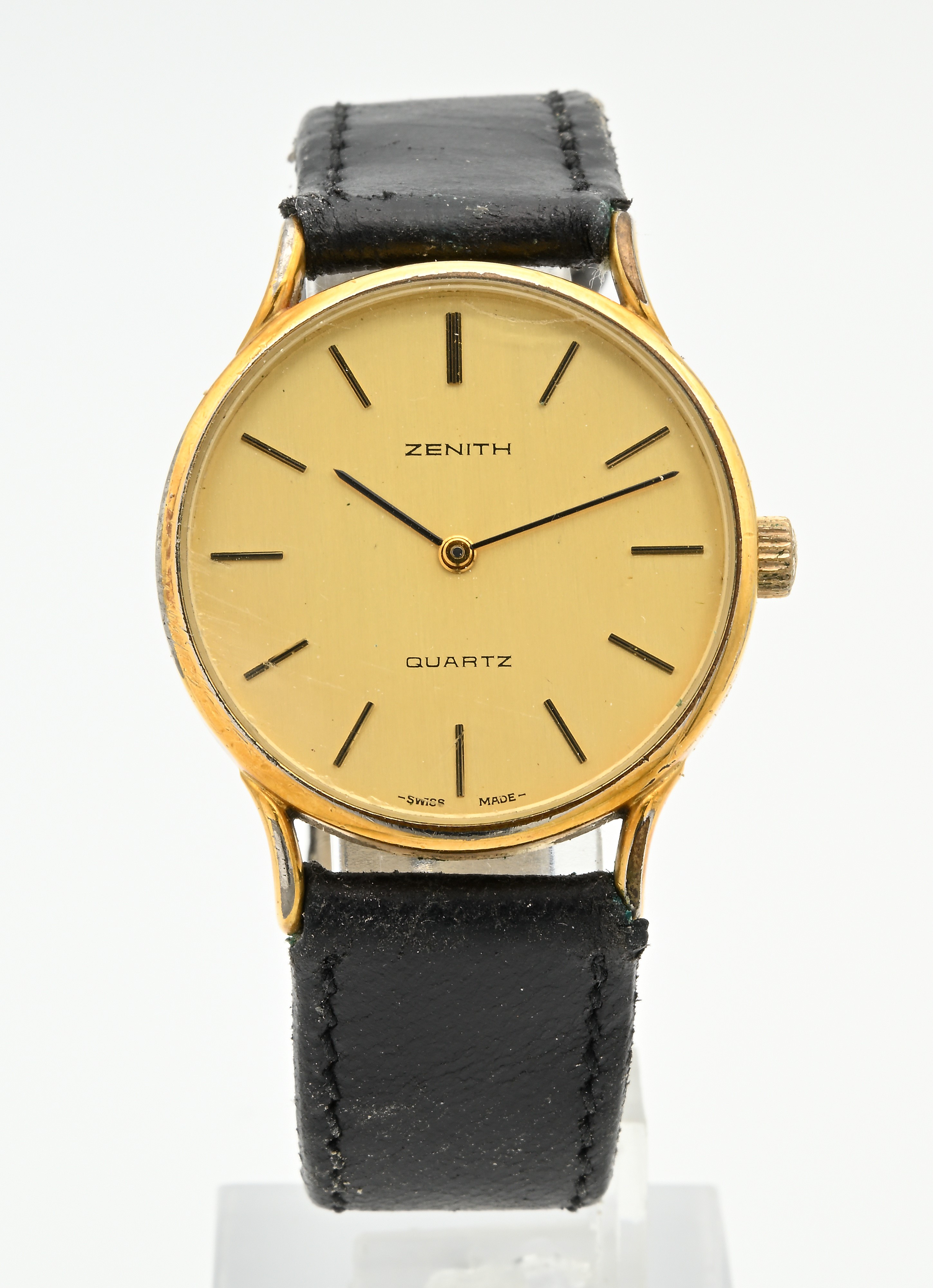 Zenith Quartz 27.0060.315 (Cal.31.5) - Orologio da polso al quarzo da uomo in metallo placcato in oro giallo 10M con fondello in acciaio, anni '80