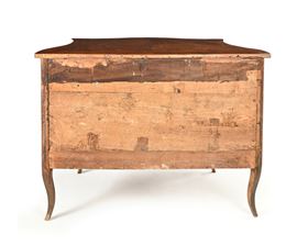 di linea mossa reca due cassetti frontali con bocchetta e maniglie in bronzo; piedi sagomati. Difetti