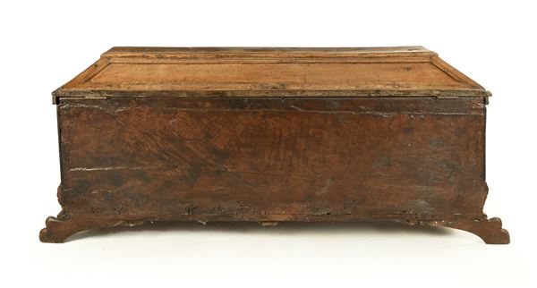 facciata intagliata in bassorilievo centrata da uno stemma affiancato da girali; piedi ferini