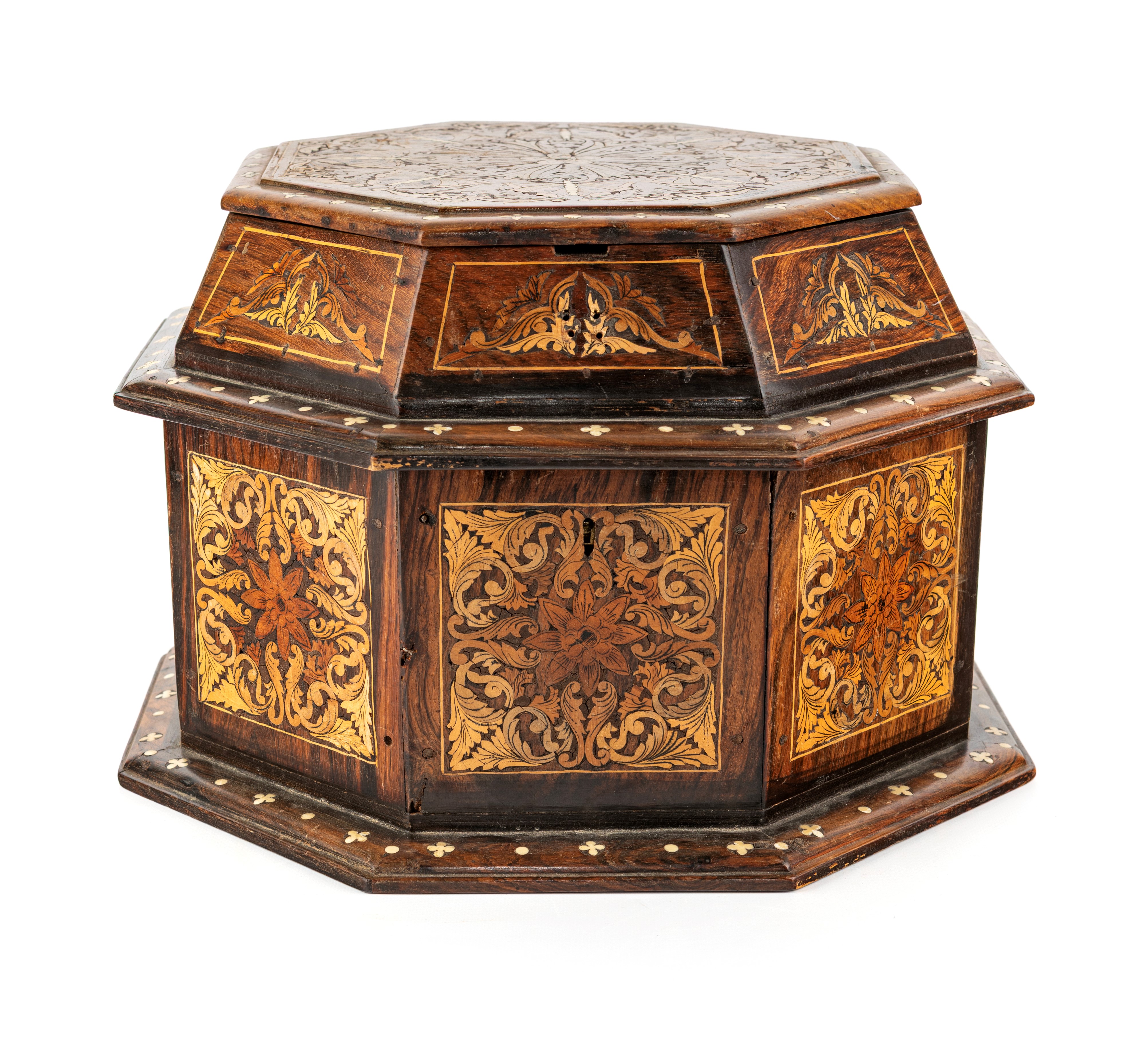 Cofanetto portagioie in legno intarsiato, Toscana, XIX secolo