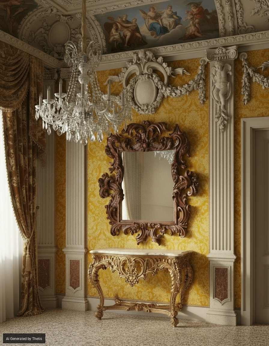 Cornice barocca a cartoccio in legno scolpito, Venezia, XVII secolo
