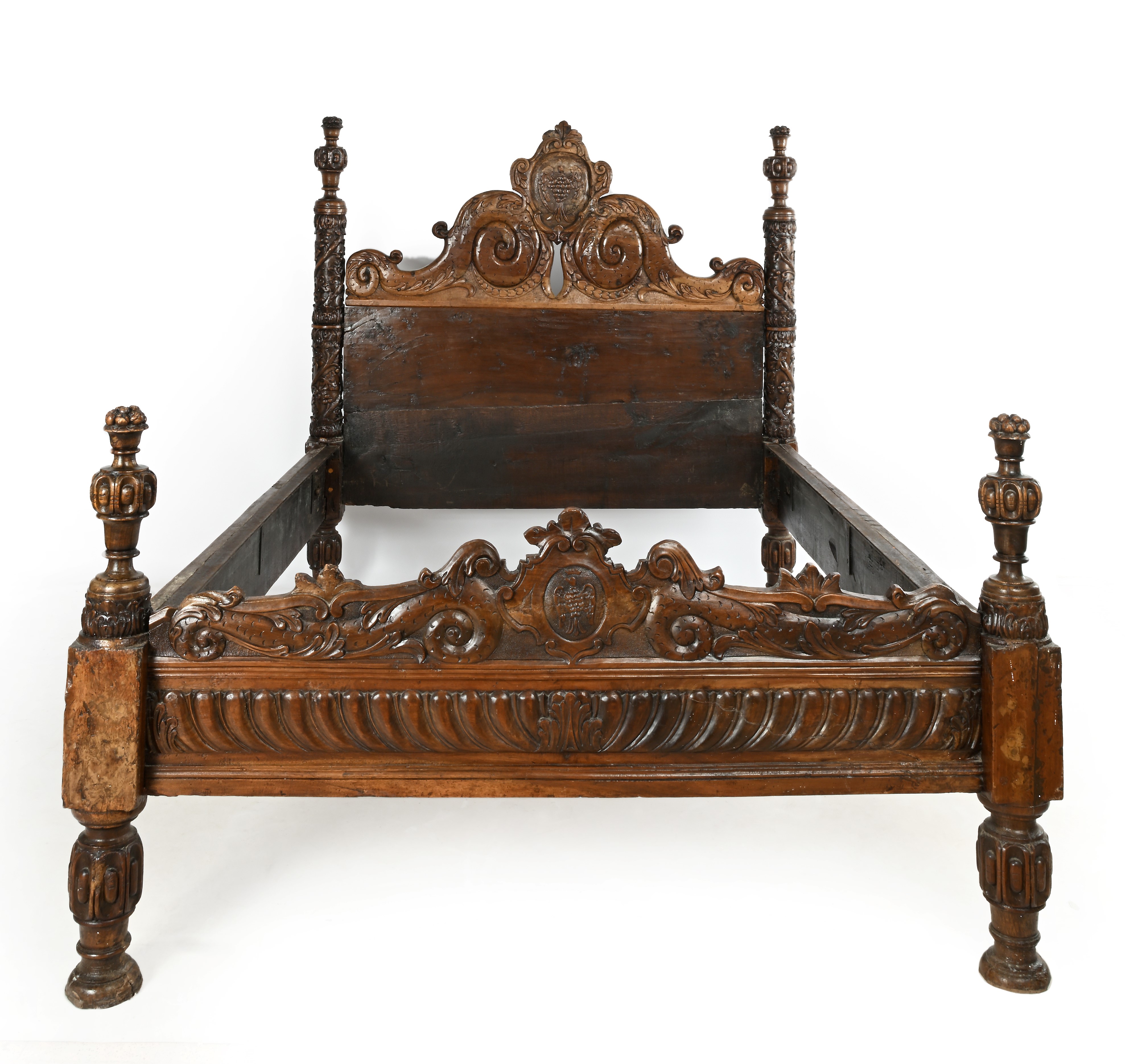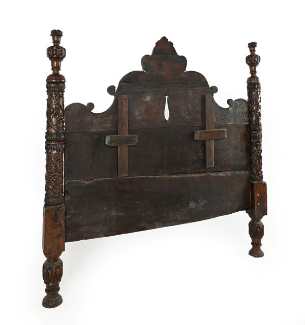 testate di altezze asimmetriche delimitate da pinnacoli angolari intagliati, centrata da scudo con aquila incisa; piedi torniti
