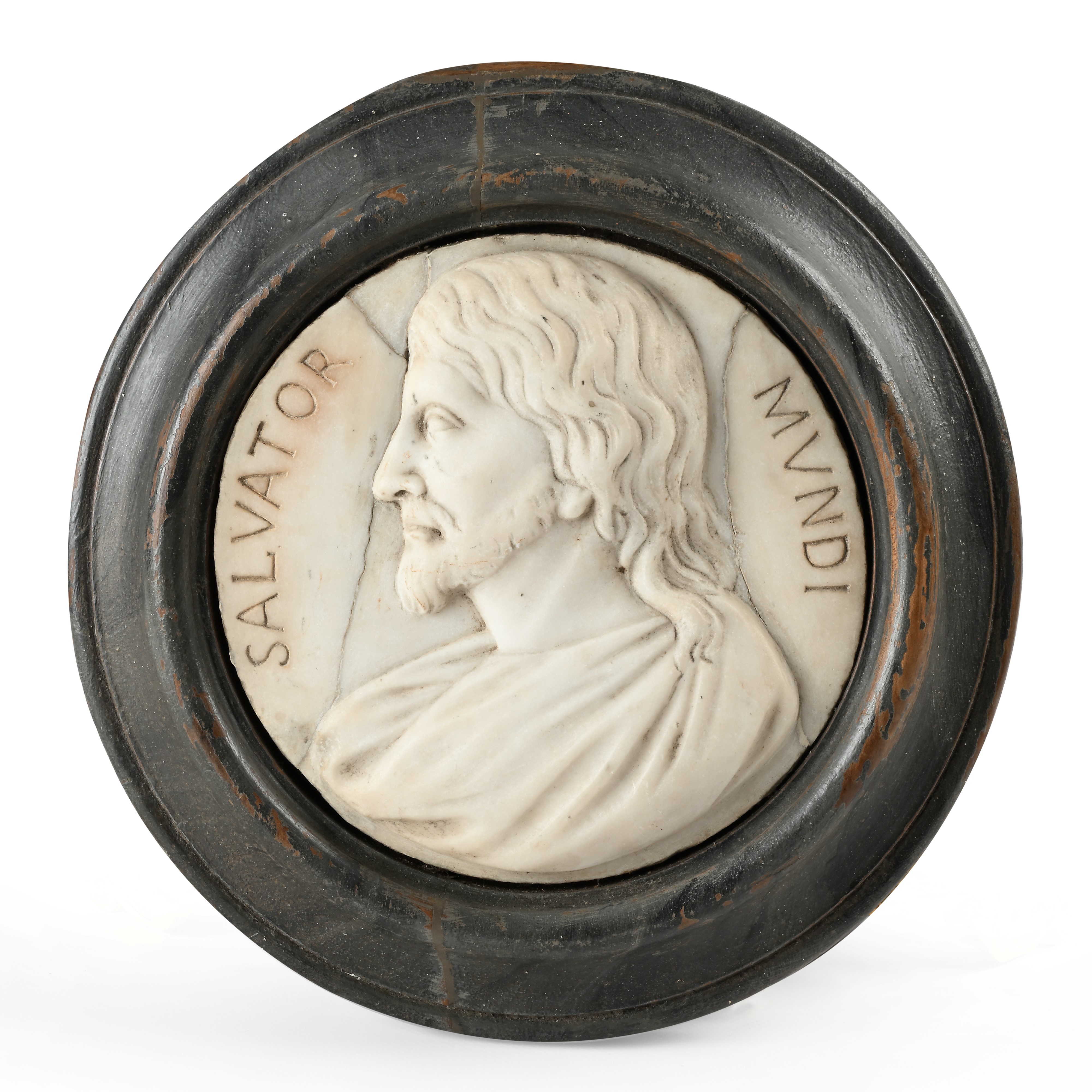 Medaglione circolare in marmo bianco raffigurante "Salvator Mundi", XVIII secolo