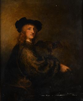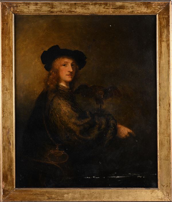 Versione settecentesca del Ritratto di uomo con falco (1643, olio su tela, cm 114,5 × 98) di Rembrandt van Rijn e bottega, attualmente conservato in collezione privata.