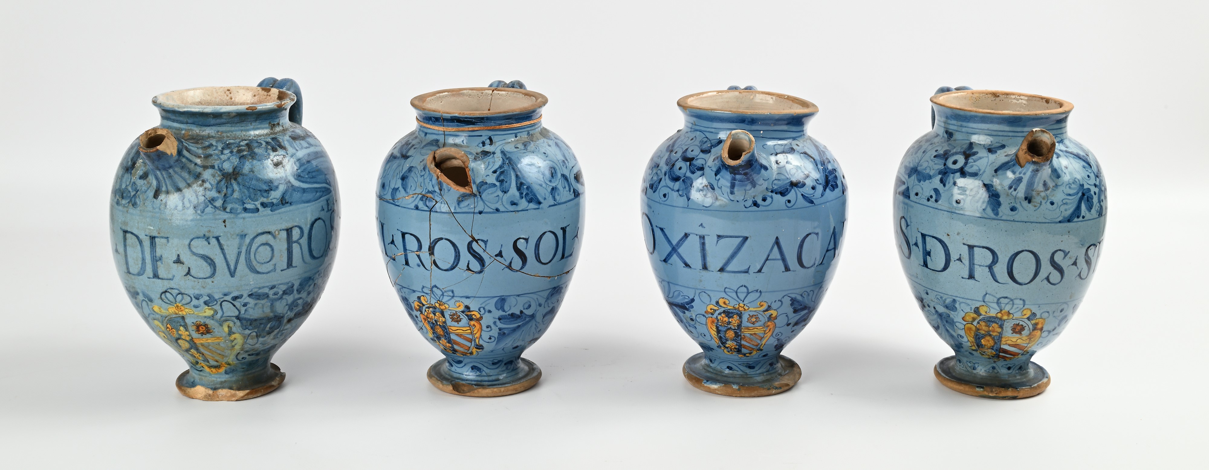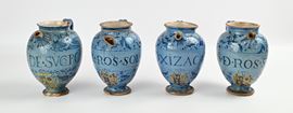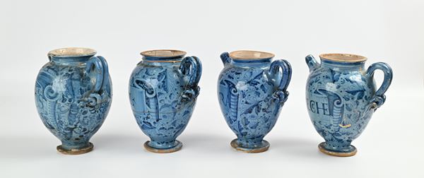Quattro orcioli in maiolica con stemma e iscrizioni