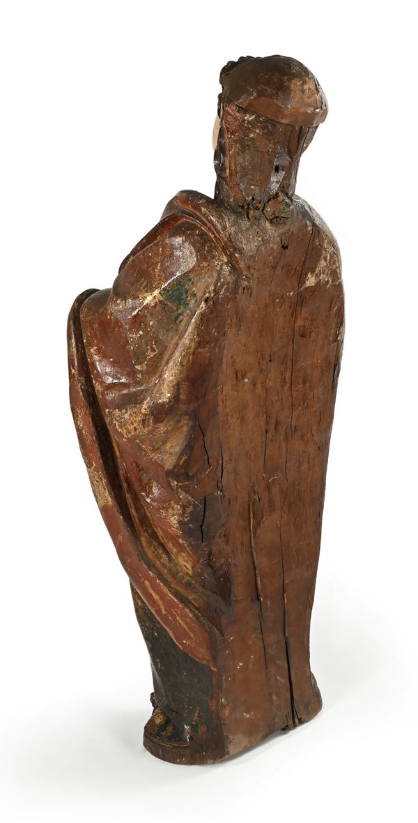 Scultura in legno laccato e dorato raffigurante Santa con libro, XVII secolo