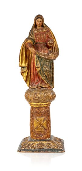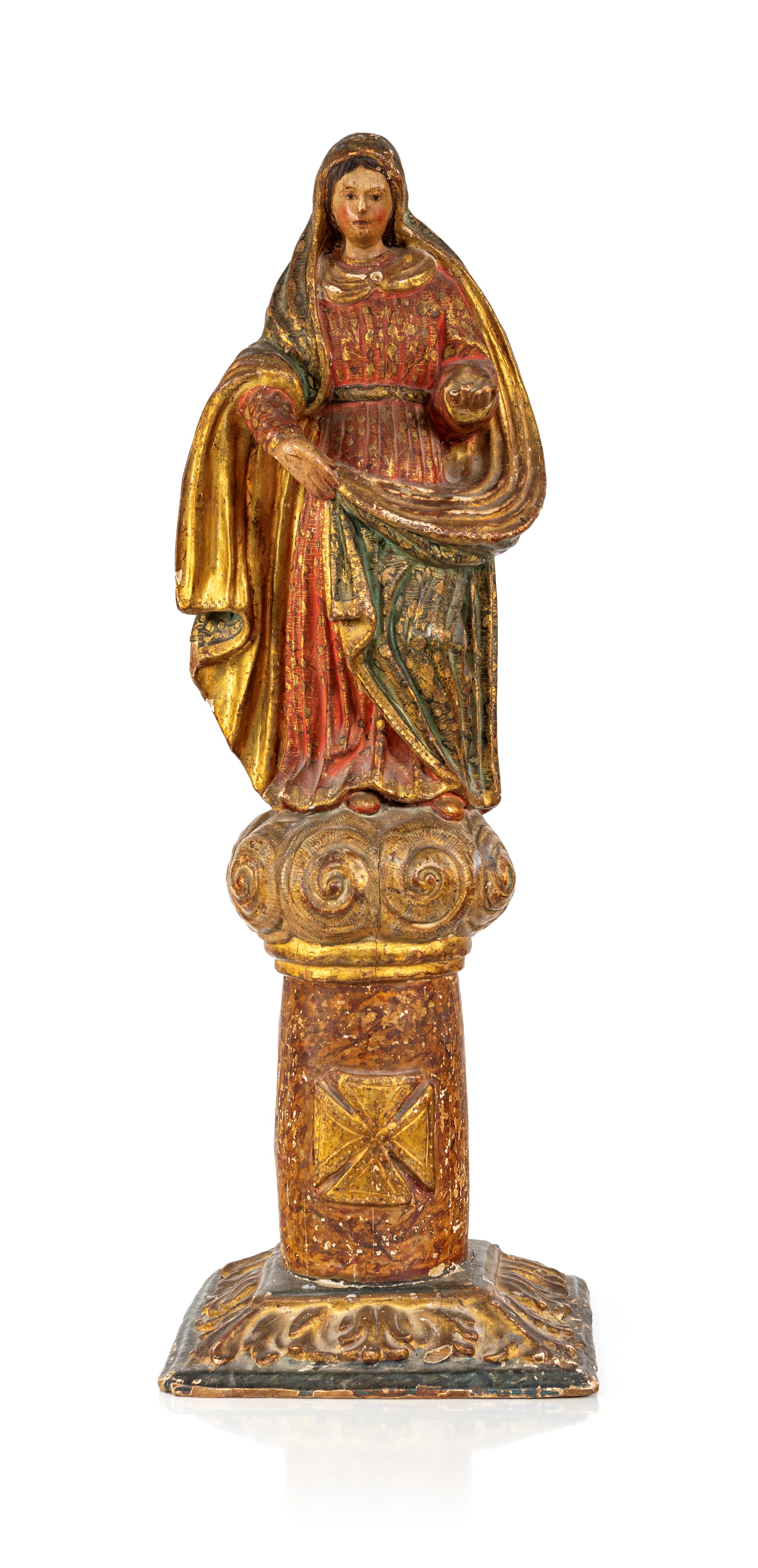 Scultura in legno policromo e dorato raffigurante la Vergine Maria, XVII secolo