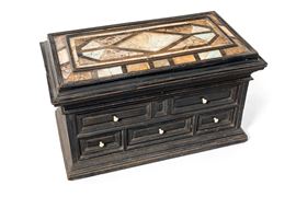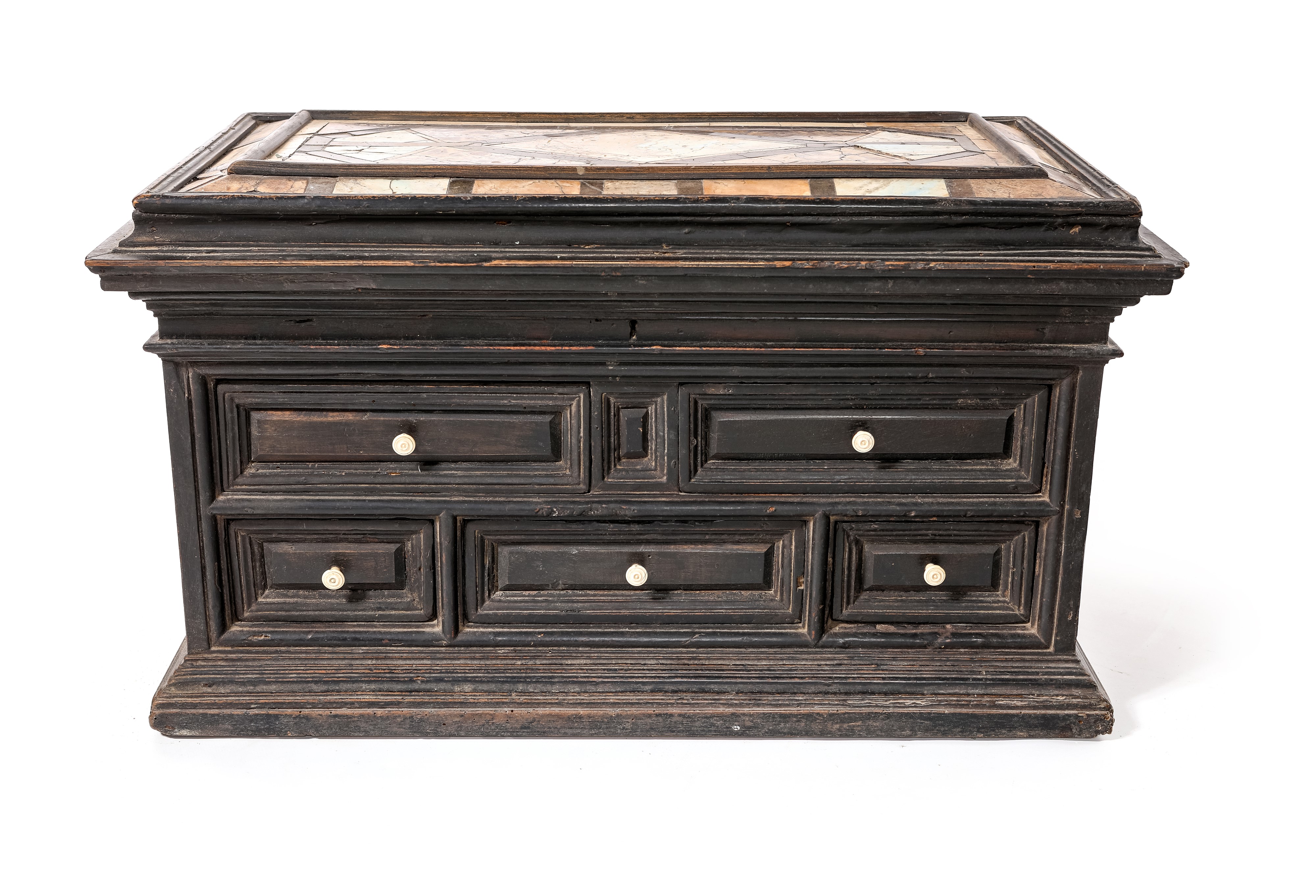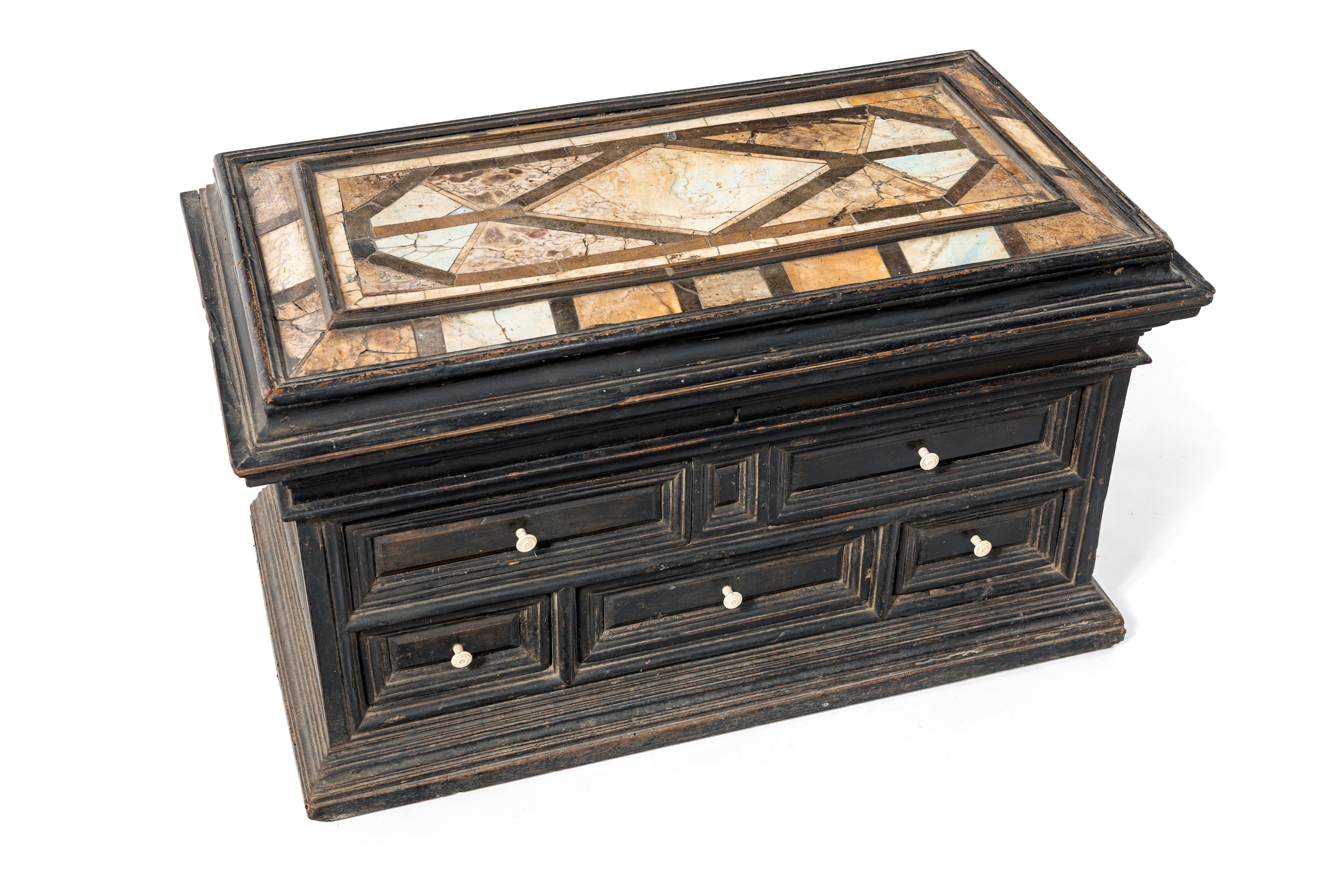 Stipo il legno ebanizzato con piano in commesso di marmi antichi, XVII secolo