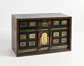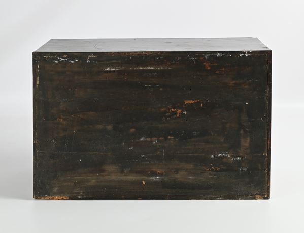 Stipo in legno e vetri eglomisé, Italia centrale, XVII secolo